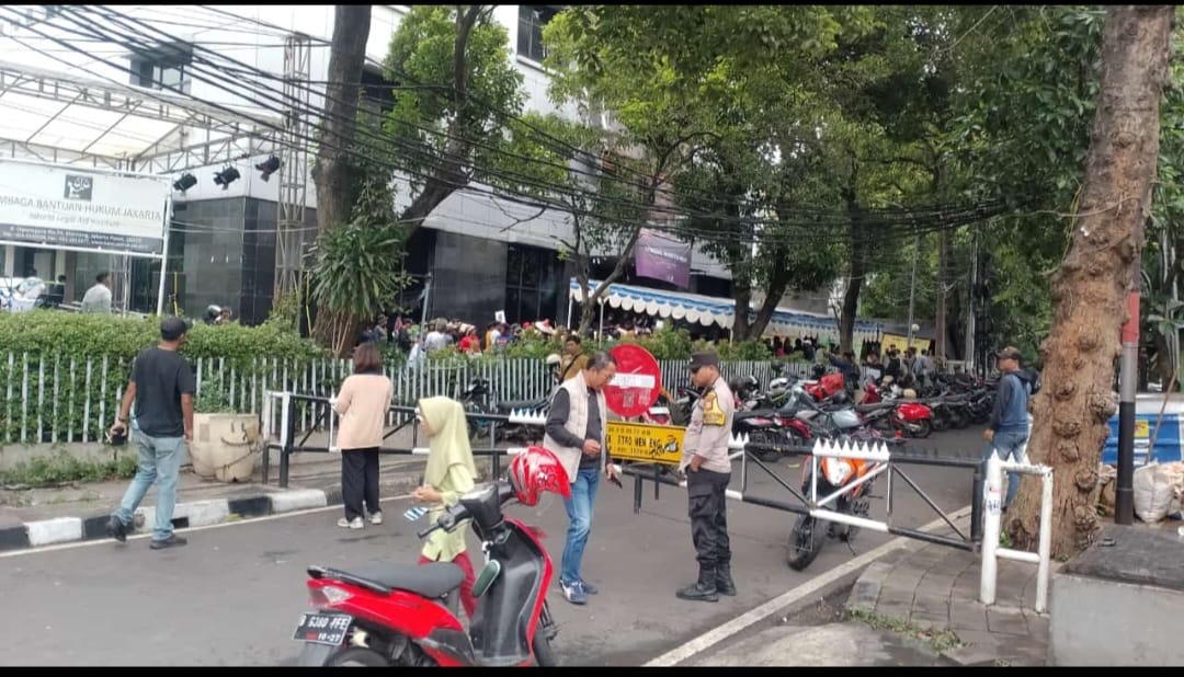 Aipda Anwar, selaku Bhabinkamtibmas Kelurahan Pegangsaan, melakukan pemantauan di titik kumpul massa aksi unjuk rasa yang berlangsung di Kantor LBH Jakarta, Jalan Diponegoro No. 74, Menteng, Jakarta Pusat. Aksi ini direncanakan akan bergerak menuju Kantor Komnas HAM di Jalan Latuharhari, Menteng, Jakarta Pusat. Pemantauan tersebut dilakukan dalam rangka memastikan situasi dan kondisi tetap kondusif selama pelaksanaan aksi dalam memperingati Hari HAM Sedunia.