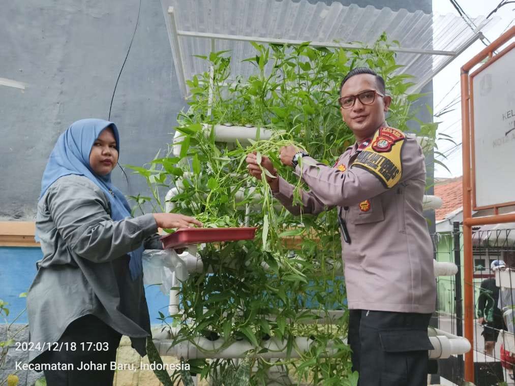 Jakarta Pusat – Bhabinkamtibmas Kelurahan Kampung Rawa Aipda Ikhwan Mulyadi, S.H., turut menghadiri kegiatan panen tanaman hidroponik jenis kangkung yang berlangsung di RPTRA Rawa Indah, Jalan Rawa Selatan II RW 04 Kelurahan Kampung Rawa, Kecamatan Johar Baru, Jakarta Pusat, pada Kamis (19/12/2024).
