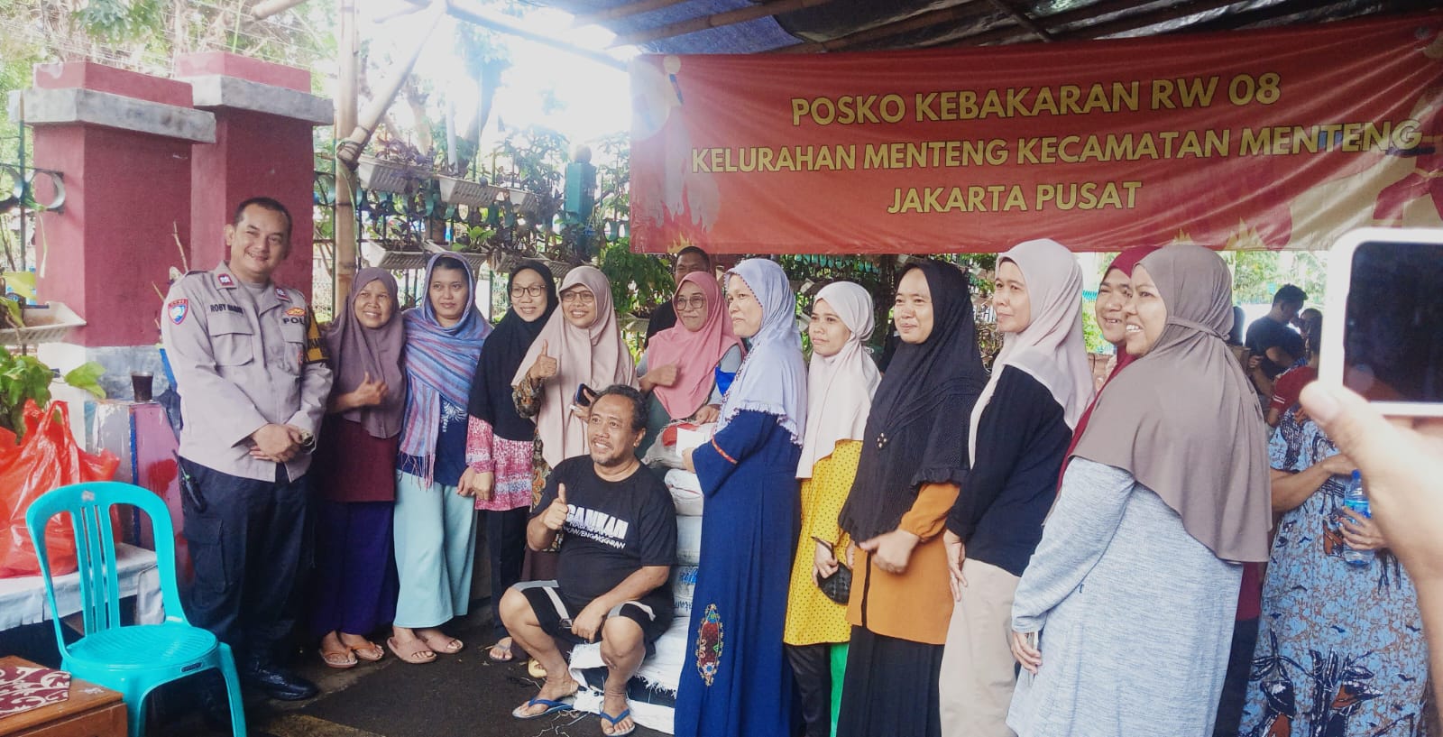 Jakarta Pusat-Pasca terjadinya kebakaran yang menghanguskan sejumlah rumah warga di RT. 15-16 RW. 08, Menteng, Jakarta Pusat, Bhabinkamtibmas setempat, Aiptu Roby hadir untuk memberikan bantuan kemanusiaan dan memantau proses penyaluran bantuan kepada korban kebakaran. Sabtu, (21/12/2024).