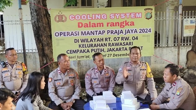 Jakarta Pusat – Dalam rangka Operasi Mantap Praja 2024, Polsek Cempaka Putih mengadakan kegiatan Cooling System sebagai upaya menjaga kondusivitas wilayah pasca Pilkada DKI Jakarta. Kegiatan ini berlangsung di RT 07 RW 04, Kelurahan Rawasari, Kecamatan Cempaka Putih, Jakarta Pusat. Jumat (27/12/2024)