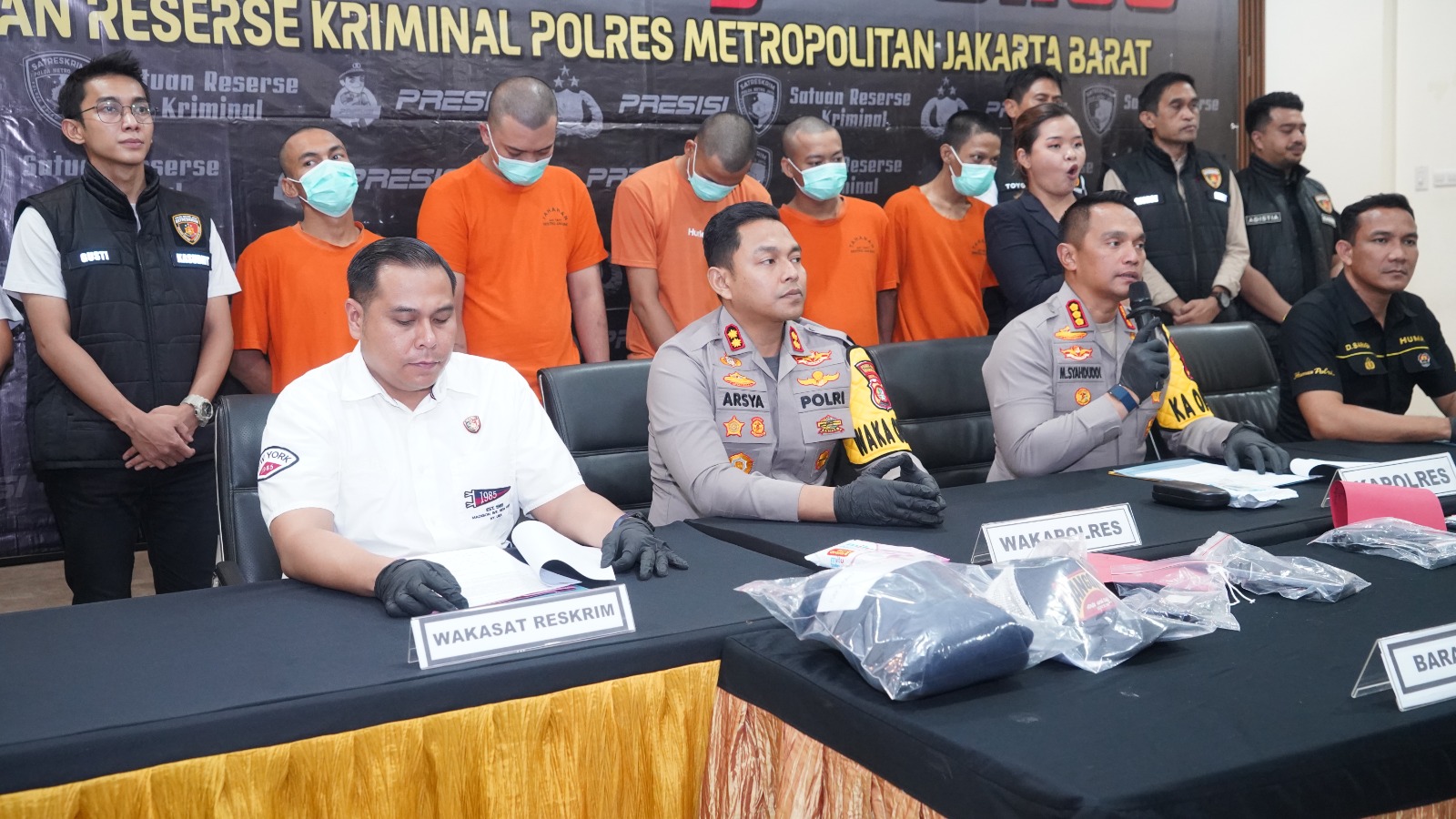 Kapolres Metro Jakarta Barat, Kombes Pol M. Syahduddi didampingi Waka Polres Metro Jakarta Barat, AKBP Teuku Arsya Khadafi dan Wakasat Reskrim Kompol Muhammad Kukuh Islami, dalam konferensi pers yang digelar di Mapolres, memaparkan kronologi dan hasil penyelidikan yang dilakukan oleh tim gabungan dari Satreskrim Polres Metro Jakarta Barat dan Unit Reskrim Polsek Kebon Jeruk.