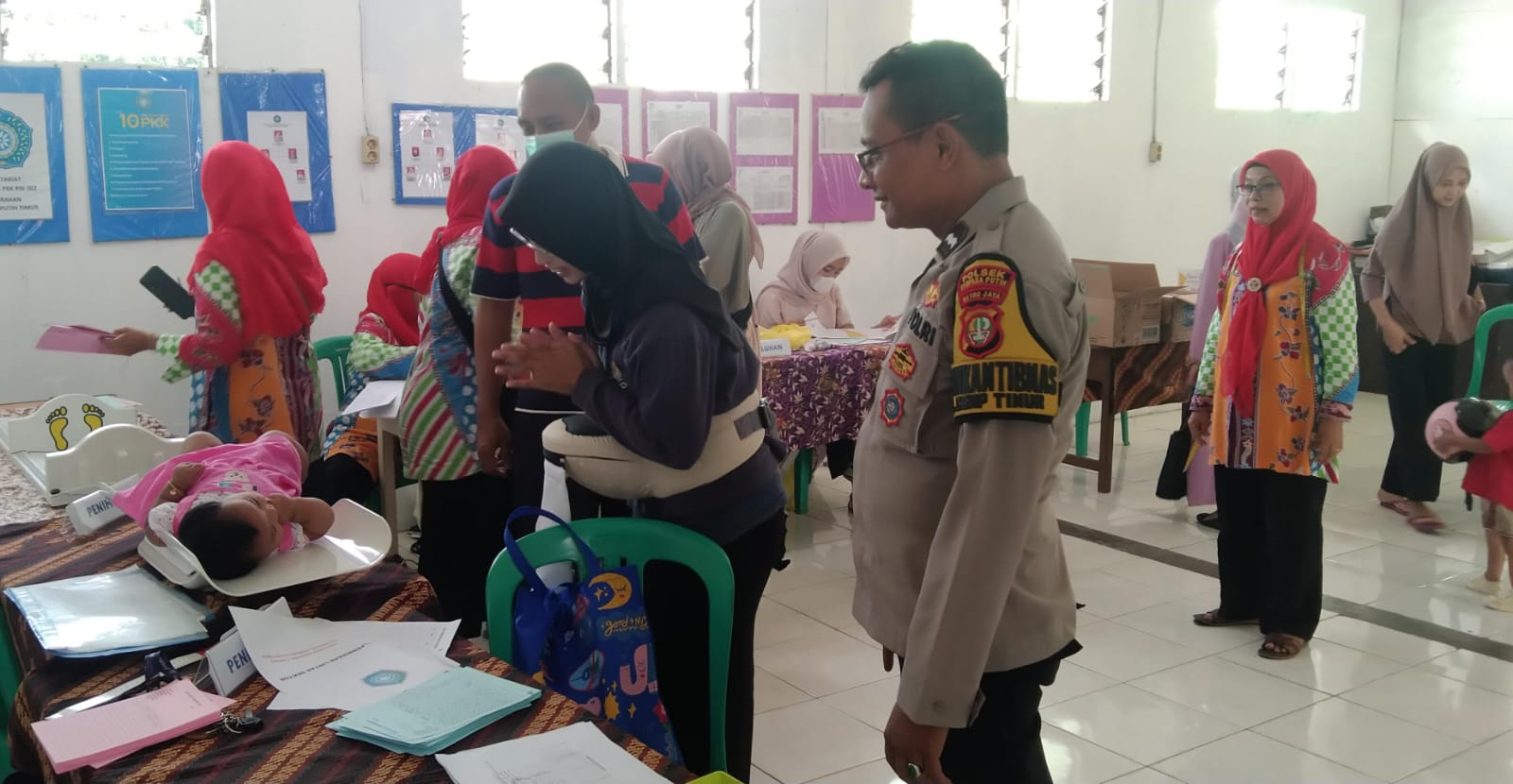 Jakarta Pusat – Bhabinkamtibmas Kelurahan Cempaka Putih Timur Aipda Wisnu Saputra mengunjungi dan membantu kegiatan posyandu balita di Kantor Sekretariat Rw 02 Kelurahan Cempaka Putih Timur Jalan Rawasari Timur I Dalam Cempaka Putih Jakarta Pusat. Senin (7/10/2024)