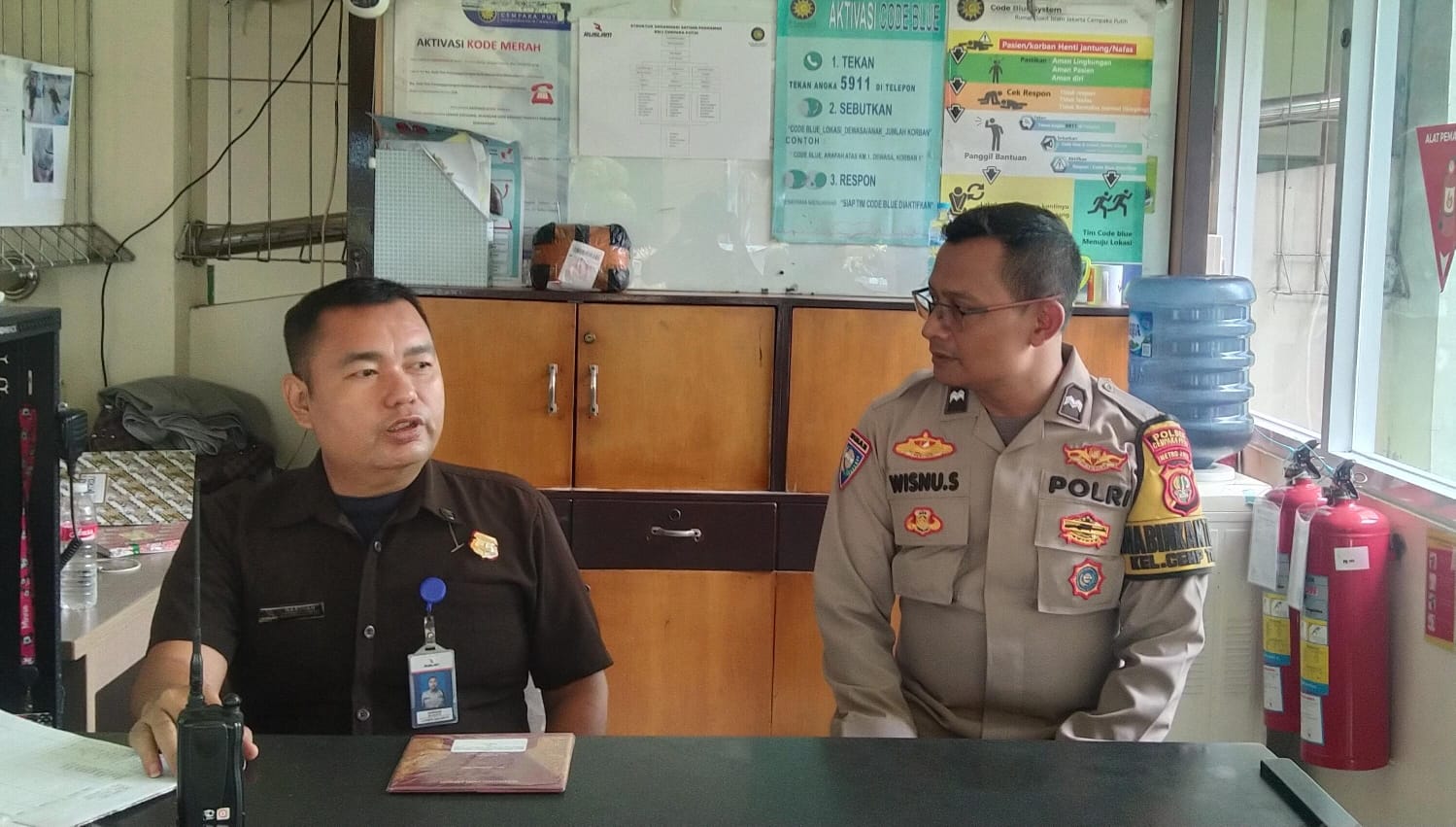 Meneruskan pesan Kapolres Metro Jakarta Pusat Kombes Pol Susatyo Purnomo Condro melalui Aipda Winu agar bekerja sama untuk menjaga keamanan dan ketertiban.