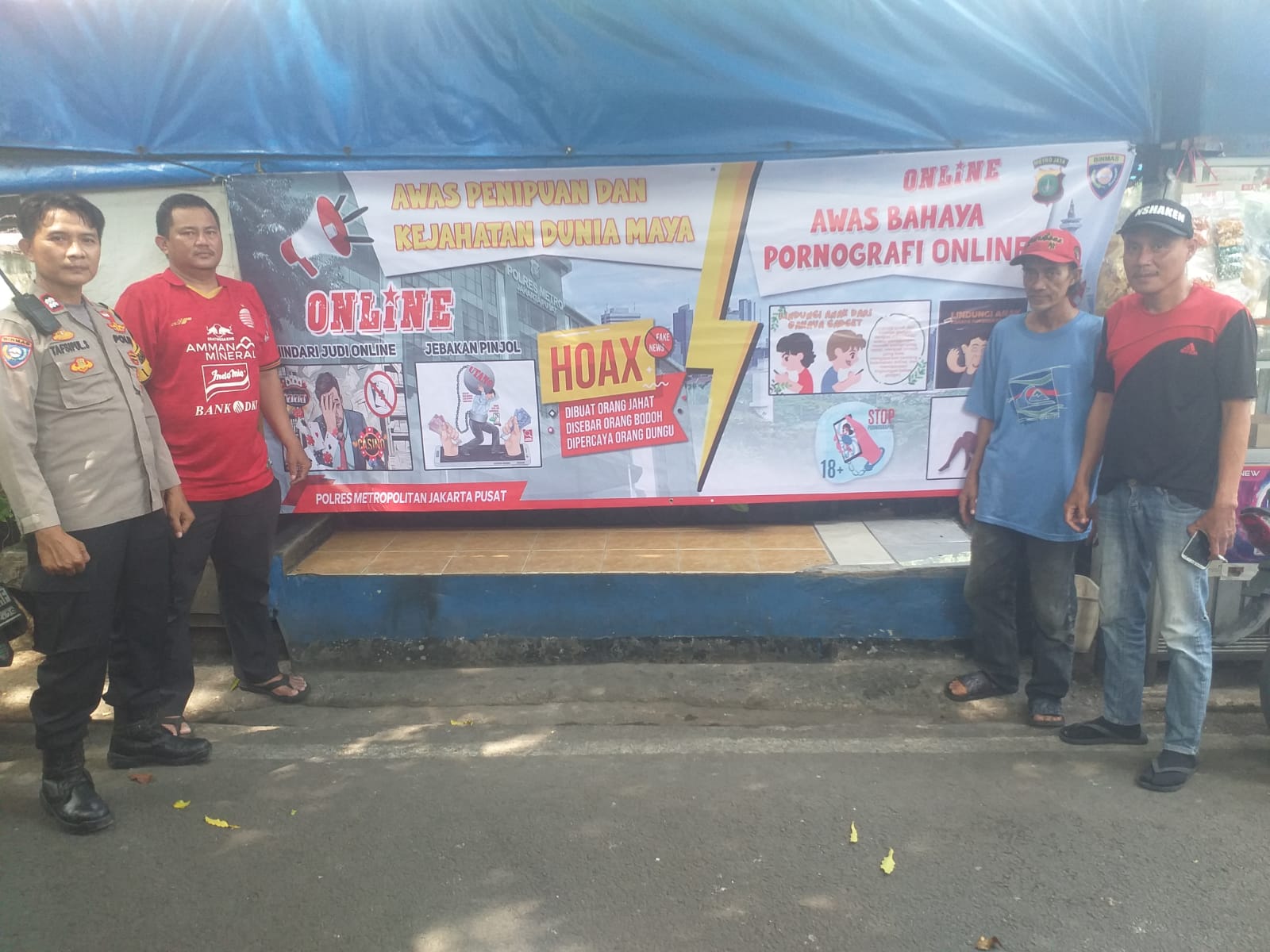 Bhabinkamtibmas Kelurahan Cikini Aiptu Tafsipul Subhani melaksanakan pemasangan spanduk di bawah rel Stasiun Gondangdia, Kelurahan Cikini, Menteng, Jakarta Pusat. Kegiatan ini bertujuan untuk memberikan edukasi serta imbauan kepada masyarakat mengenai bahaya yang dihadirkan oleh beberapa ancaman digital, seperti judi online, pinjaman online (pinjol) ilegal, pornografi online, serta penyebaran berita hoaks.