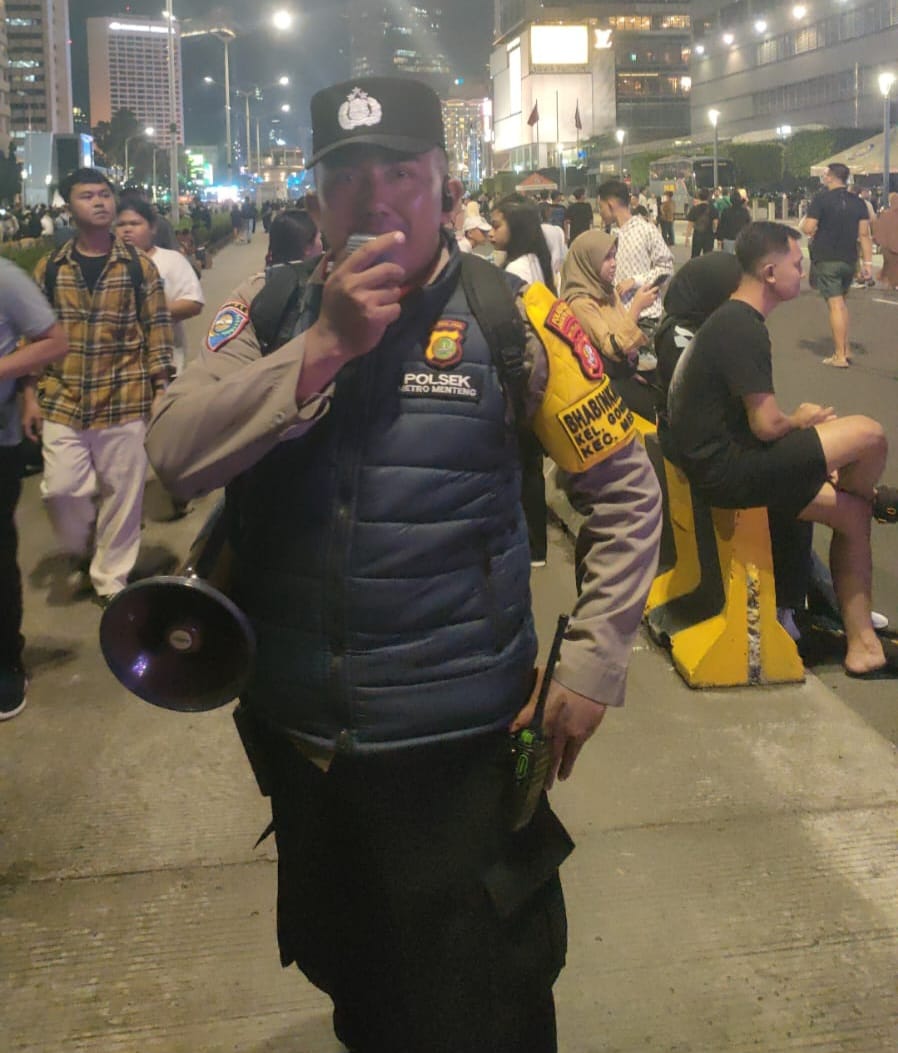 Pada malam pergantian Tahun Baru 2025, Aiptu Kamidi, selaku Bhabinkamtibmas Kelurahan Gondangdia, melakukan pemantauan dan memberikan himbauan kepada masyarakat yang merayakan malam pergantian tahun di kawasan strategis perempatan Sarinah, Jalan MH Thamrin, Menteng, Jakarta Pusat. Dalam suasana keramaian yang dipenuhi oleh warga yang antusias menyambut tahun baru, Aiptu Kamidi dengan penuh tanggung jawab menyampaikan pesan-pesan penting demi menjaga keamanan dan kenyamanan bersama.