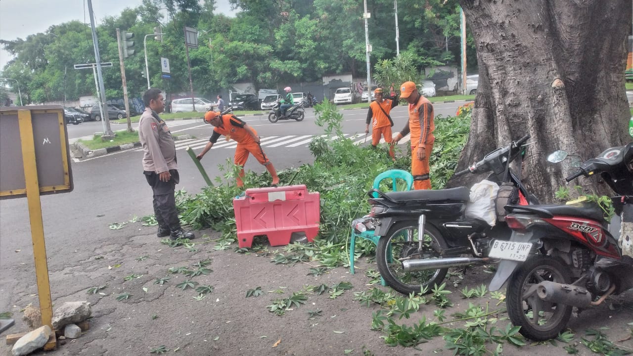 Jakarta Pusat – Bhabinkamtibmas Gunung Sahari Selatan Aipda Mahajin Simanjuntak Monitoring Kegiatan Dinas Pertamanan dan PPSU dalam penopingan Pohon dan pembersihan daun atau ranting pohon dikarenakan ranting dan dahan pohon sdh panjang dan menjulang ke arah Videotron Polres sehingga menghalangi dan menutupi video atau gambar yg tayang pada videotron tersebut di Jl. Garuda samping Polres Metro Jakarta Pusat Kelurahan Gunung Sahari Selatan Kemayoran, Jakarta Pusat.