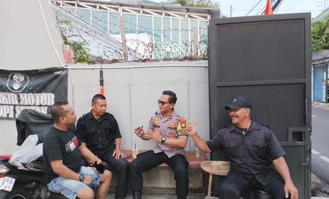 Jakarta Pusat – Bhabinkamtibmas Kelurahan Kampung Rawa Aipda Ikhwan Mulyadi, S.H., melaksanakan patroli dialogis dan imbauan Kamtibmas kepada petugas Security Kopi Sultan di Jalan Rawa Selatan IV RT 05 RW 05 Kelurahan Kampung Rawa, Kecamatan Johar Baru Jakarta Pusat. Minggu (08/12/2024).