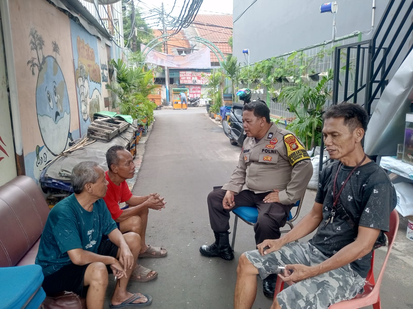Dalam kunjungan tersebut, ia bertemu dengan salah satu warga, Bapak Sopyan, untuk menyampaikan imbauan kamtibmas.
