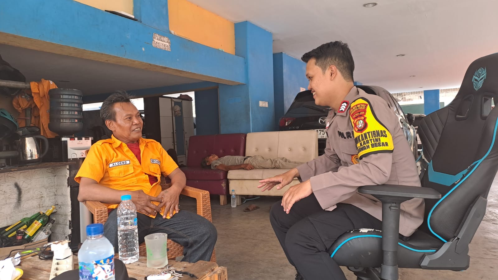 Dalam kunjungannya, Brigadir Charis berinteraksi dengan warga setempat, termasuk Bapak Aloeng, guna mendengar saran serta masukan terkait keamanan dan ketertiban masyarakat (Guantibmas) di lingkungan Kos Kosan.