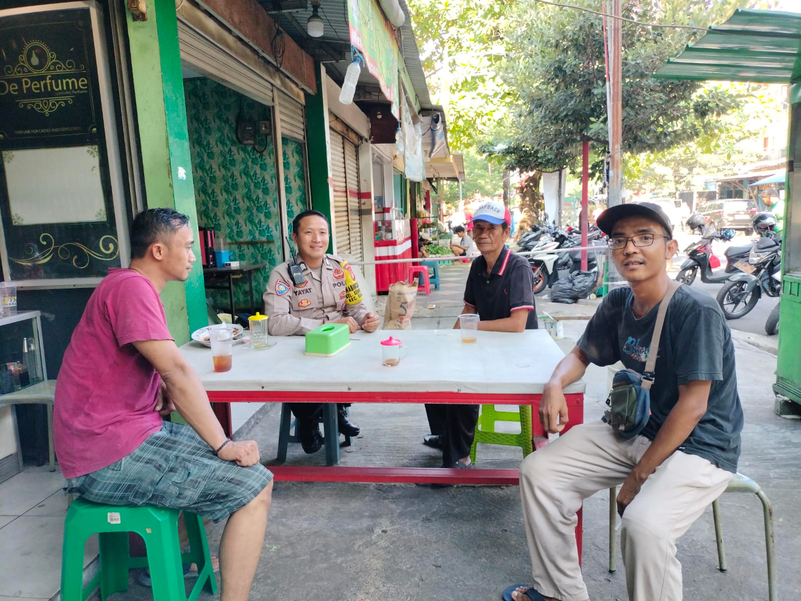 Kegiatan yang berlangsung sekitar pukul 15.45 WIB tersebut menyasar para pelaku usaha kecil menengah (UMKM) di wilayah setempat. Brigadir Yayat menyambangi para pedagang, termasuk Bapak Yon dan sejumlah warga sekitar, untuk berdialog langsung mengenai situasi keamanan lingkungan serta memberikan pesan-pesan kamtibmas.