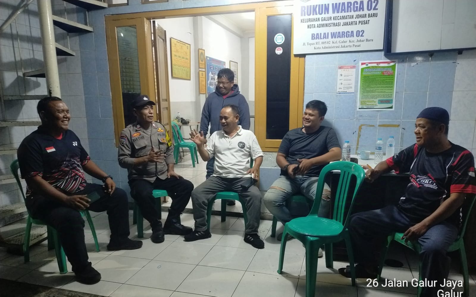 Jakarta Pusat – Bhabinkamtibmas Kelurahan Galur Aiptu Baktiar Emri, melaksanakan kegiatan sambang dialogis ke Pos Sekretariat RW 02 Galur bahas kamtibmas antisipasi tawuran dengan Ketua RW, Staf RW dan Ketua RT, Jalan Topaz RT 05 RW 02 Kelurahan Galur, Kecamatan Johar Baru Jakarta Pusat, pada Rabu dini hari (13/11/2024).