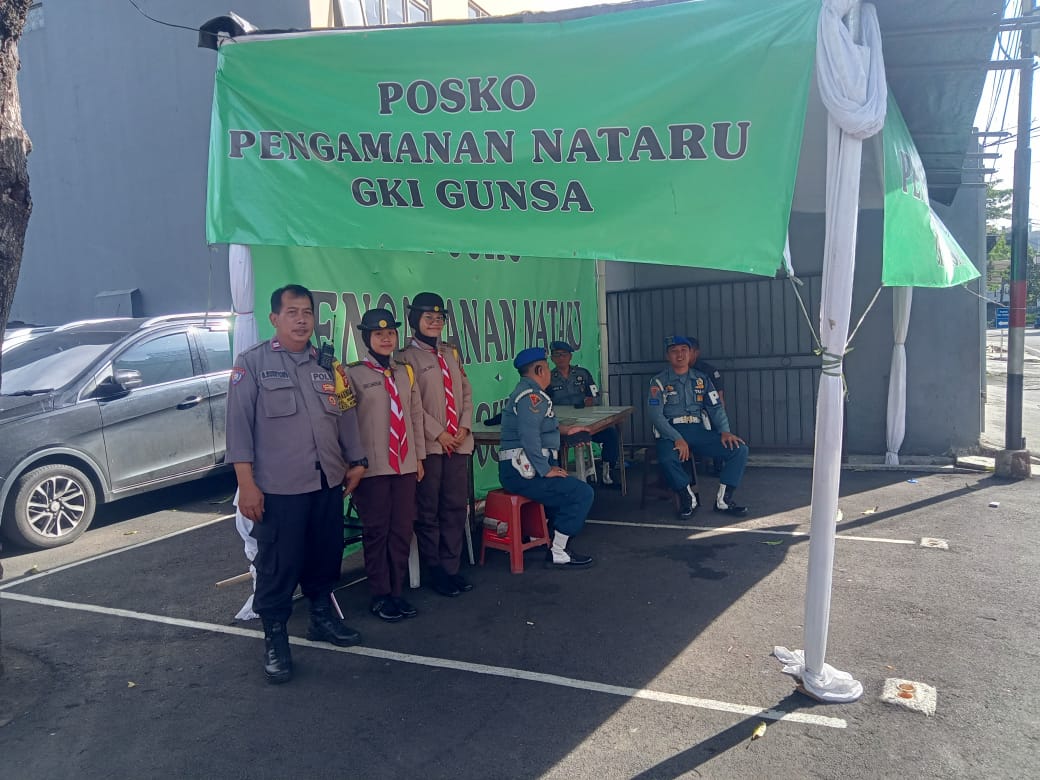 Jakarta Pusat – Bhabinkamtibmas Kelurahan Harapan Mulia Aiptu Bambang Budiyono Amankan Perayaan Natal di Gereja GKI Gunung Sahari di Jl.Gunung Sahari IV No 8 Kelurahan Gunung Sahari Selatan Kemayoran Jakarta Pusat. Rabu (01/01/2025)