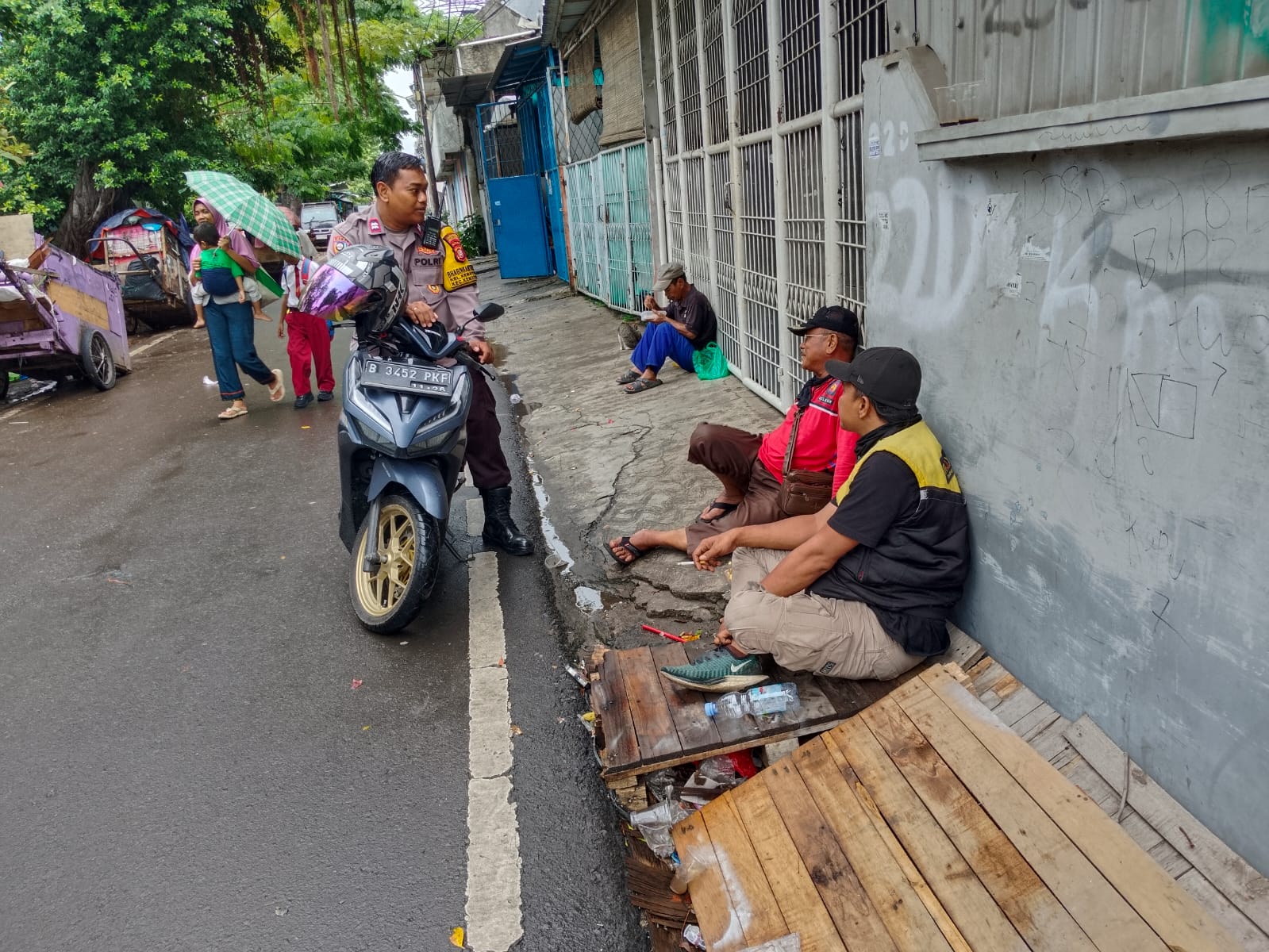 Selanjutnya Aiptu Dwi Yulianto bertemu dengan Bpk. Handoko dan Bpk. Surya selaku warga sekitar, guna mendengar saran dan masukan terkait situasi Kamtibmas di sekitar Kelurahan Kemayoran, Kemayoran Jakarta Pusat.