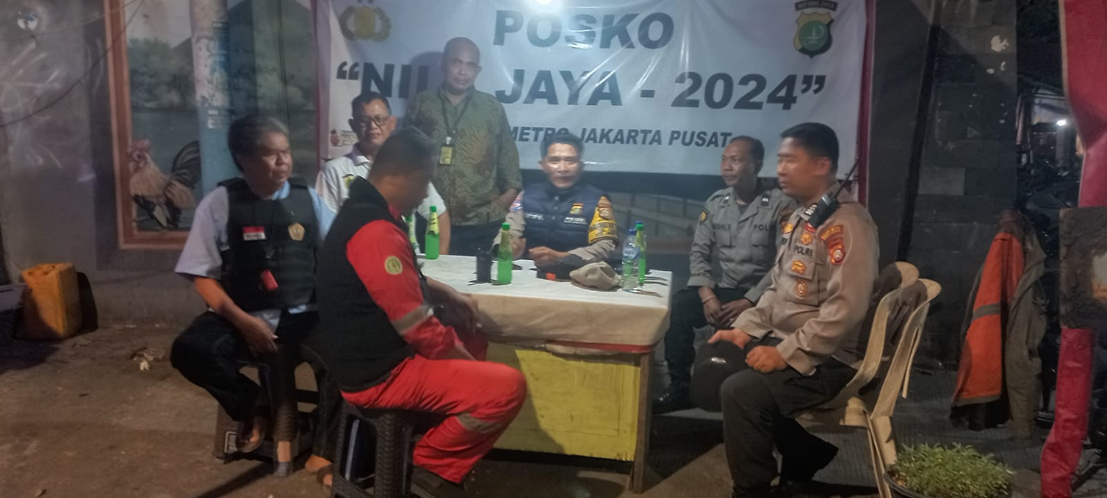 Jakarta Pusat – Aiptu Tafsipul Subhani Bhabinkamtibmas Cikini Polsek Metro Menteng Dan Anggota Polsubsektor Sabang Aipda Agung dan Anggota Polsubsektor Cikini Bripka Tri Sugiyarto serta Pokdarkamtibmas Pemantauan Menjelang Pilkada di Posko Nila Jaya 2024 Perbatasan Kali Pasir dengan Kwitang Senen, Jakarta Pusat. Rabu malam (9/10/2024).