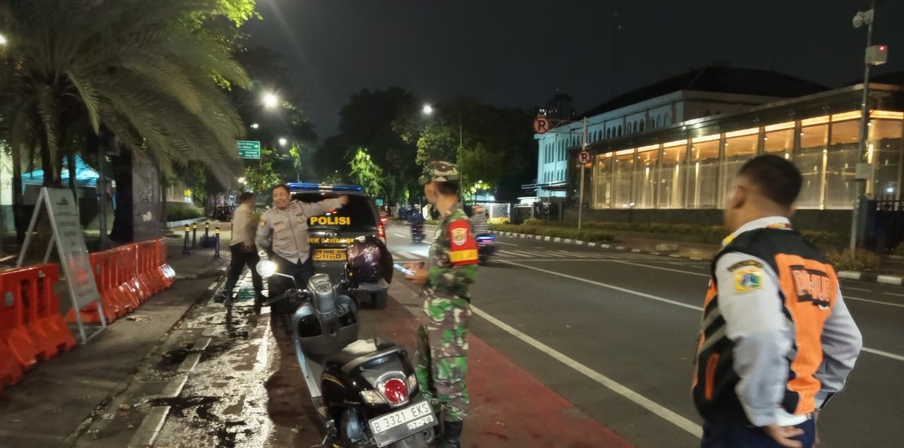 Jakarta Pusat – Kapolsubsektor Pasar Baru Ipda Syafrizal, melaksanakan patroli gabungan untuk memastikan keamanan dan stabilitas menjelang Pilkada Serentak 2024, Tiga Pilar yang terdiri dari unsur kepolisian, TNI, dan pemerintah daerah melaksanakan antisipasi Tawuran di wilayah hukum Polsek Sawah Besar. Jakarta Pusat. Senin malam hari (15/10/2024)
