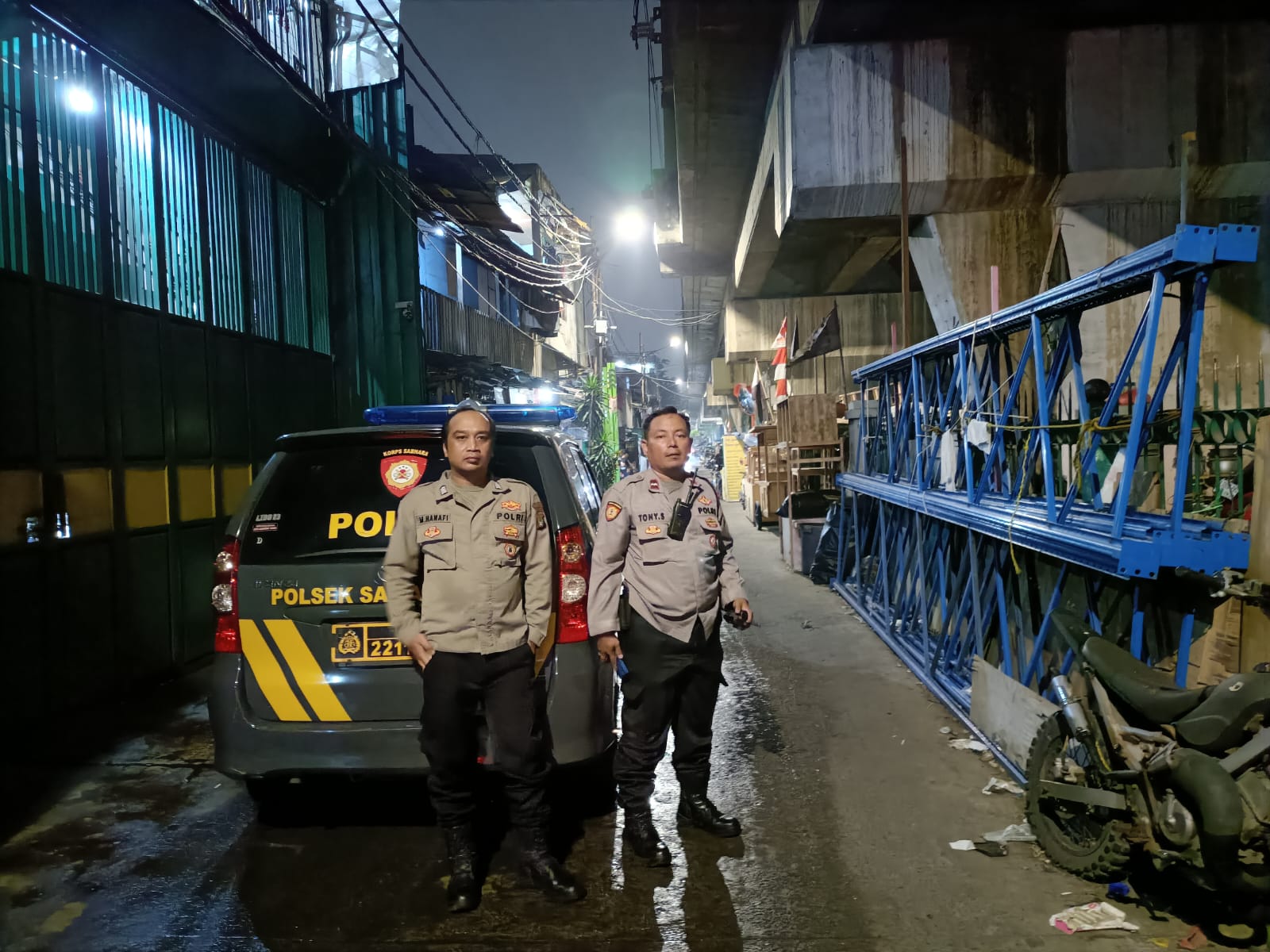 )Jakarta Pusat – Panit Sabhara Polsek Sawah Besar, Aiptu Toni Susanto dan personil piket, dalam rangka memastikan keamanan warga, sekitar pukul 03.30 WIB, melaksanakan Patroli Dialogis di pemukiman warga, dan jalan Raya sebagai upaya antisipasi tawuran antar warga dan kelompok motor, di wilayah hukum Polsek Sawah Besar, Jakarta Pusat. Sabtu dini hari (16/11/2024)