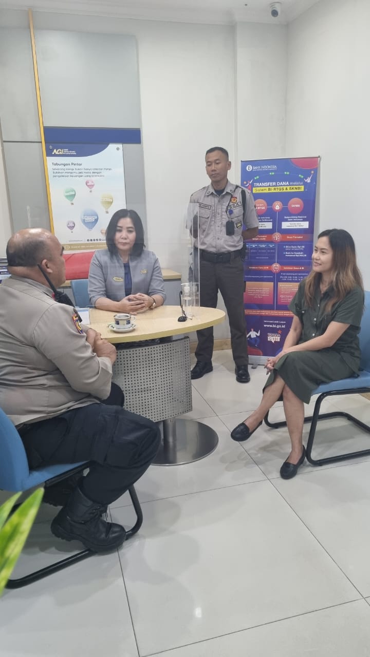 Kegiatan patroli dialogis dan sambangi Pegawai dan Petugas Keamanan Bank Artha Graha sebagai cooling system sekaligus bertemu Meirtha sampaikan imbauan kamtibmas agar lebih meningkatkan pelayanan dan pengawasan terhadap nasabah yang datang, Pastikan Security selalu siap siaga, Pastikan CCTV dalam keadaan aktif untuk mempermudah monitoring dan menjelang Pilkada DKI Jakarta agar selalu menjaga kedamaian walaupun beda pilihan.