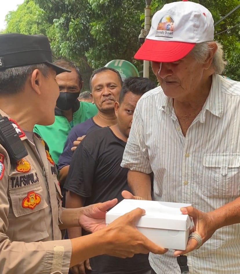Jakarta Pusat – Bhabinkamtibmas Cikini Aiptu Tafsipul Subhani memberikan makanan siap saji kepada warga kurang mampu dan pengemudi ojol di sekitaran wilayah Polsek Metro Menteng. Jumat (01/11/2024)