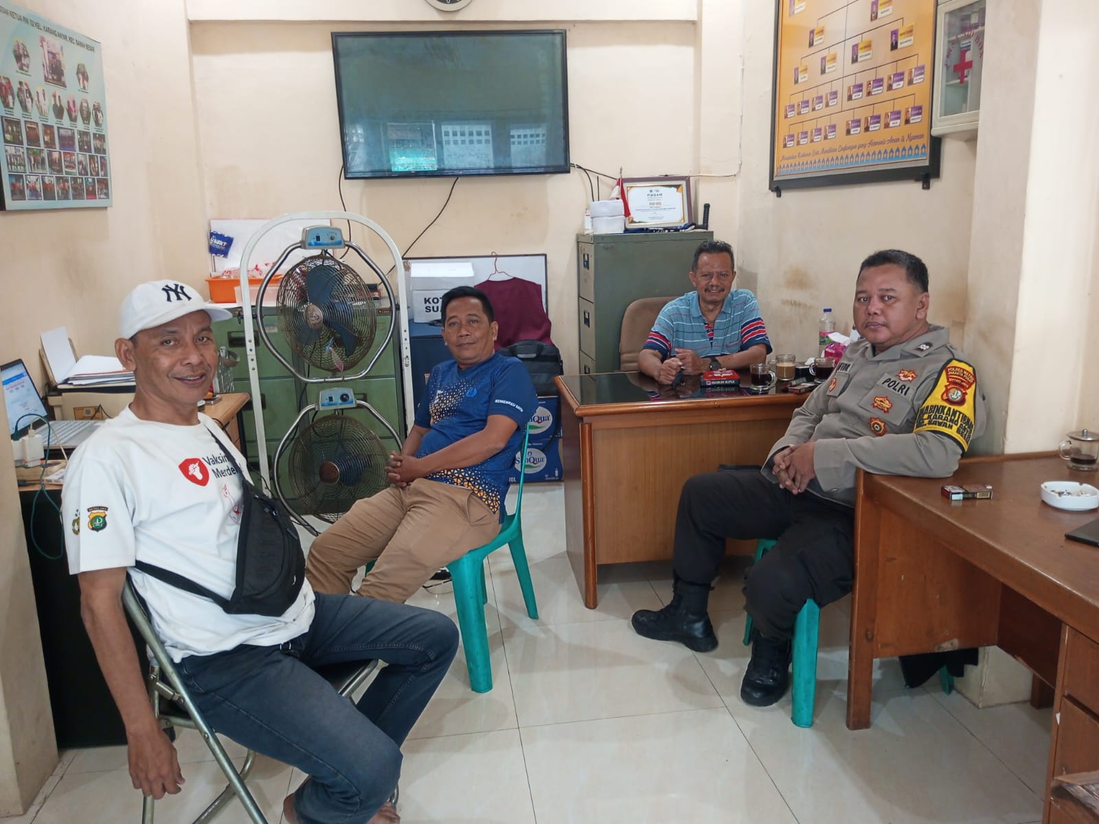 Kegiatan yang berlangsung di Jl. D Raya RW 02 ini bertujuan untuk mempererat komunikasi antara aparat keamanan dan masyarakat, sekaligus membahas berbagai isu kamtibmas di lingkungan sekitar. Hadir dalam giat tersebut Bapak Sugianto dan para pengurus RW 002 serta perwakilan dari masing-masing RT dan warga