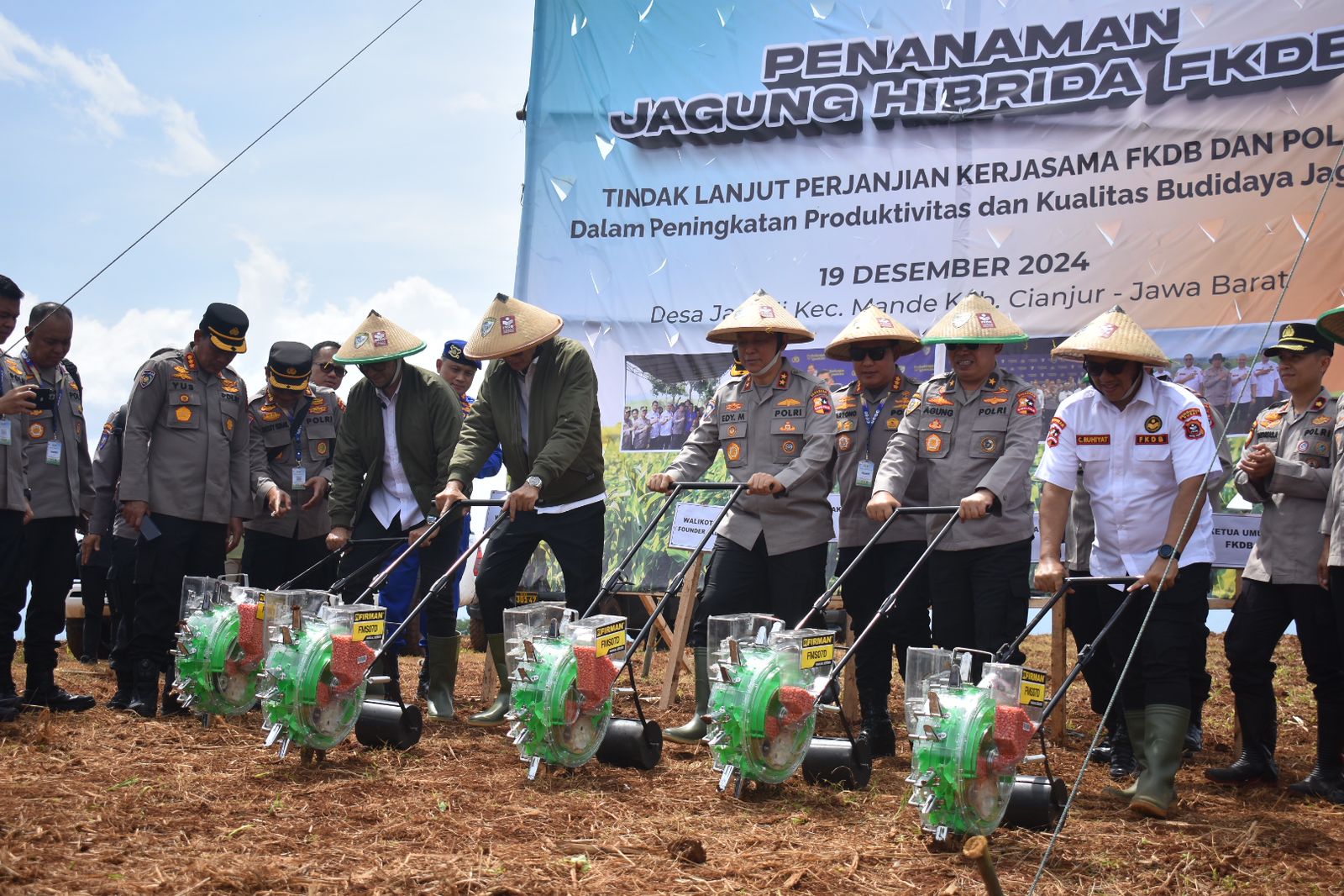 Ditemui di kawasan lahan pertanian Kementerian Pertahanan (Menhan) Mande Cianjur, Kamis (19/12/24), Ayep Zaki mengungkapkan, di tahun ke empat kemitraan FKDB dan Polri ini melakukan penebaran benih jagung.