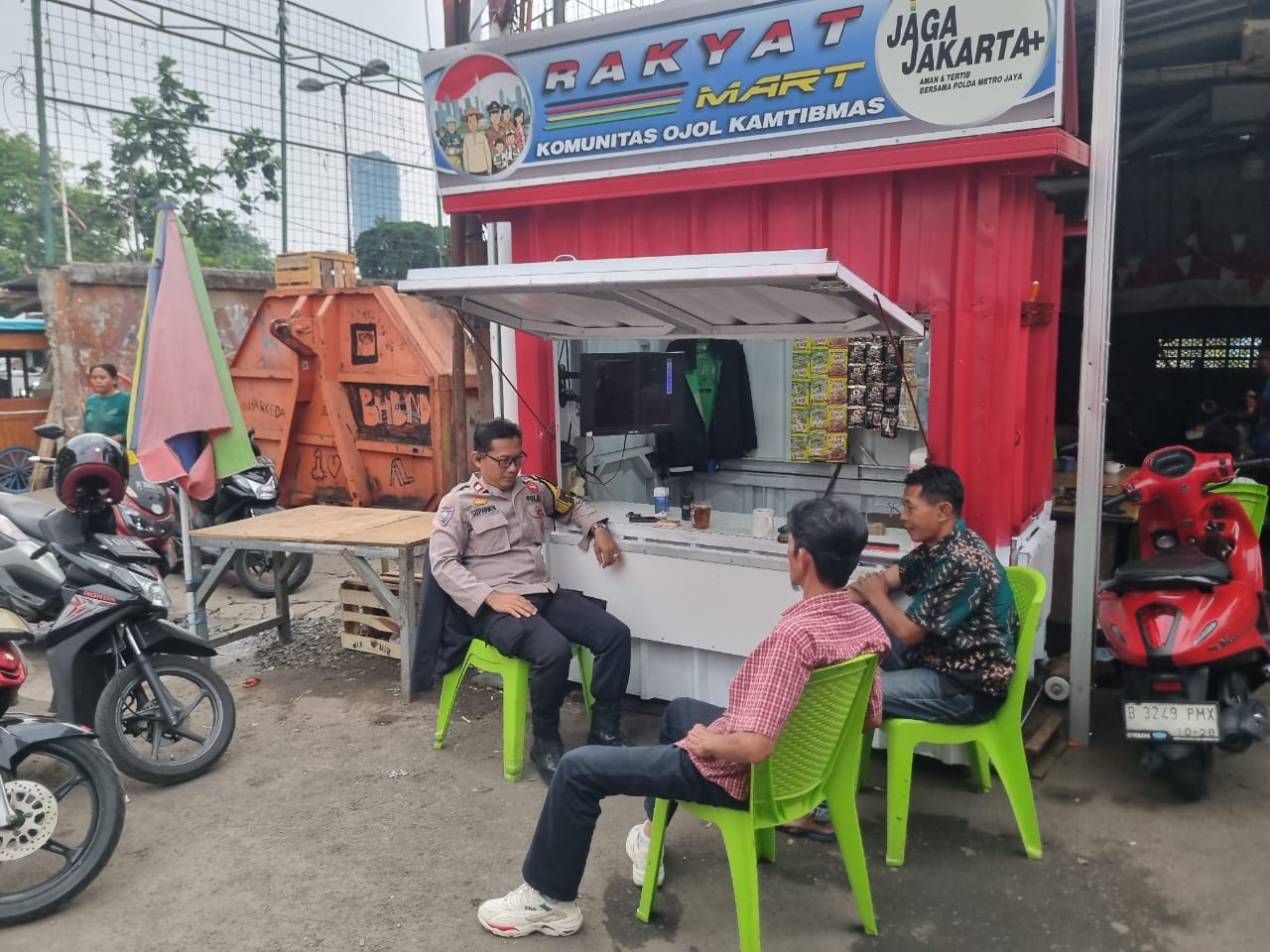 Tempojakarta.id,Jakarta Pusat – Bhabinkamtibmas Kelurahan Karet Tengsin Aiptu Suparmin bersama Ojol dan Ketua LMK Wilayah Karet Tengsin melakukan kegiatan ngopi bareng sambil santai di Gerai Rakyat Mart Komunitas Ojol Kamtibmas, Jalan Karet Pasar Baru Barat I RT 04/07, Kelurahan Karet Tengsin, Kecamatan Tanah Abang, Jakarta Pusat. Senin (20/10/2025) sore.