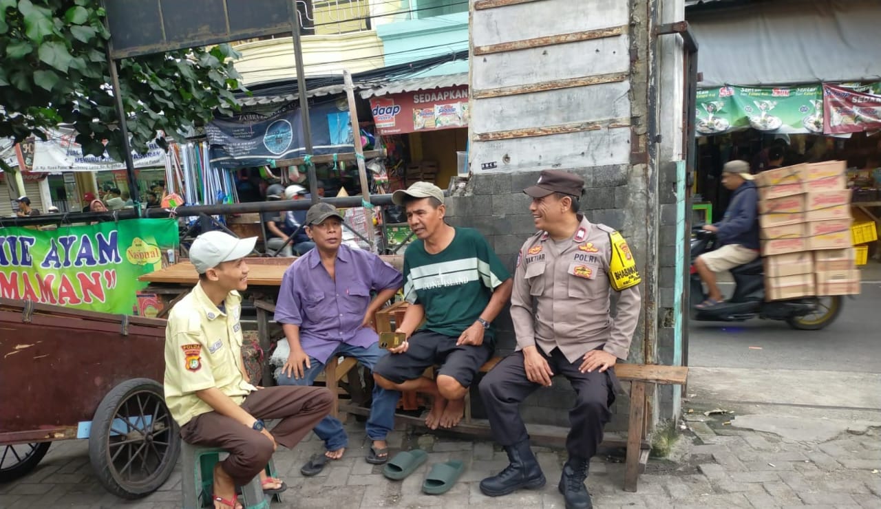 Jakarta Pusat – Bhabinkamtibmas Kelurahan Galur Aiptu Baktiar Emri, mengadakan kegiatan imbauan Kamtibmas di Pasar Gembrong, Jalan Galur Jaya RT 09 RW 04 Kelurahan Galur, Kecamatan Johar Baru Jakarta Pusat. Kamis (16/01/2025). Kegiatan ini bertujuan untuk meningkatkan kerja sama dalam menjaga keamanan dan ketertiban lingkungan pasar.