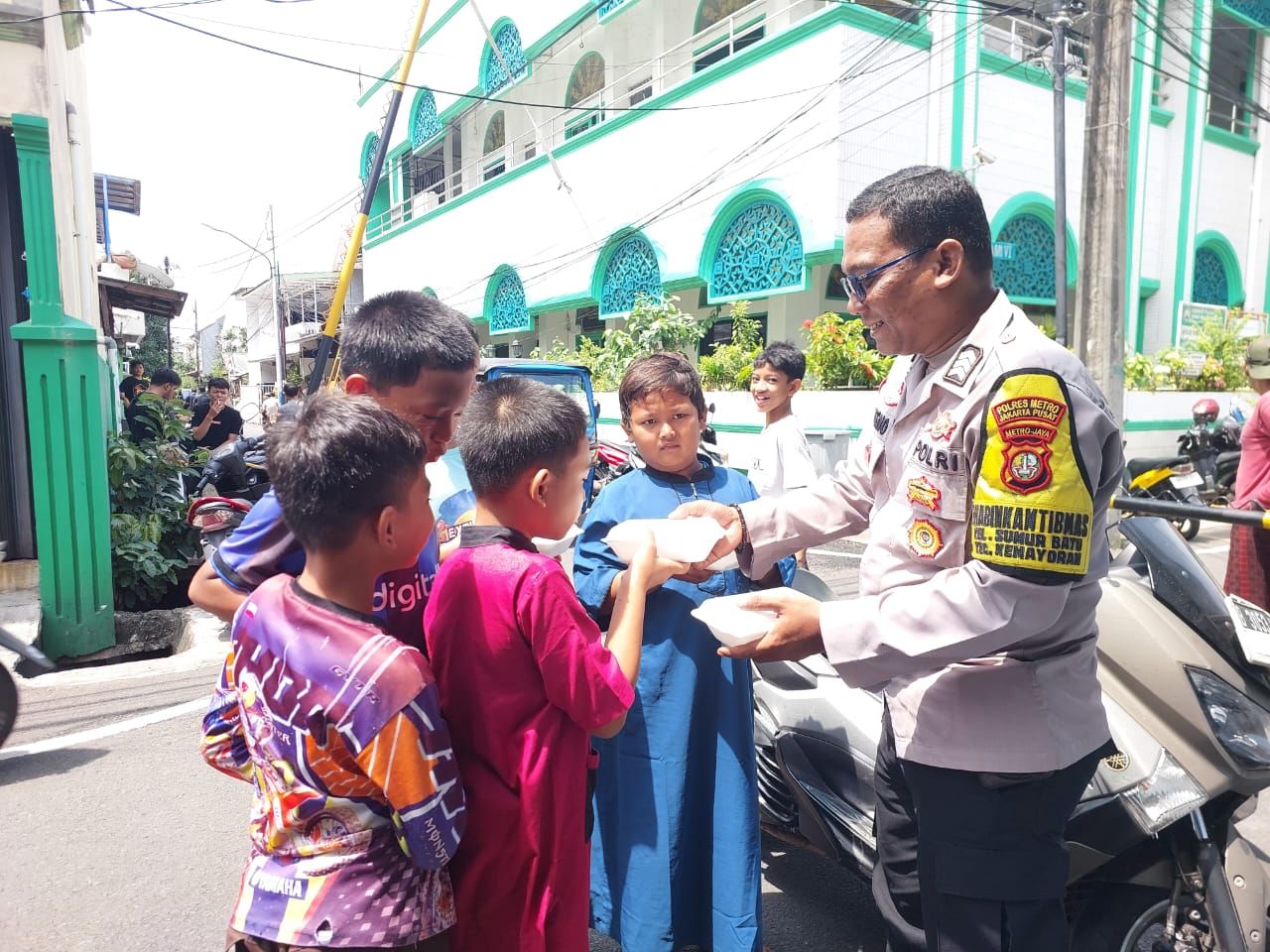 Jakarta Pusat – Bhabinkamtibmas Kelurahan Sumur Batu kembali melaksanakan kegiatan Jumat Berkah. Dalam kegiatan itu, dibagikan 50 paket nasi kotak kepada masyarakat dan jamaah yang telah melaksanakan Sholat Jumat di Masjid Al-Mustaqim, Kelurahan Sumur Batu, Kecamatan Kemayoran, Jumat (27/12/2024).