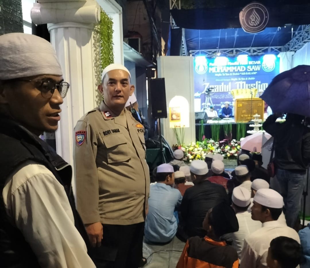 Pada hari yang penuh berkah, Kanit Binmas Menteng AKP Irawan Junaedi, S.E., M.M. bersama dengan Bhabinkamtibmas Menteng Aiptu Robby Danan Jaya menghadiri acara Maulid Nabi Muhammad SAW yang diselenggarakan oleh Majelis Taklim As-Salam di Jalan Menteng Tenggulun, Menteng, Jakarta Pusat.