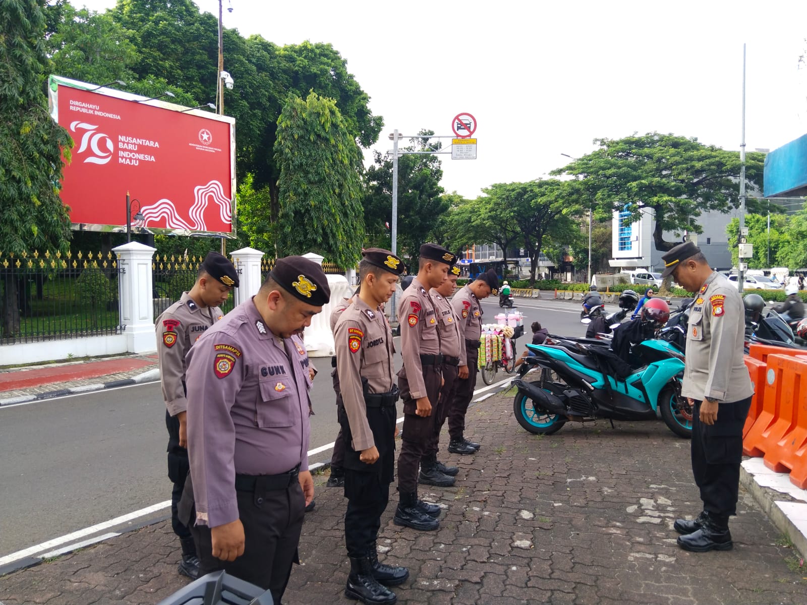 Kegiatan pengamanan ini dipimpin langsung oleh Kanit Samapta Polsek Sawah Besar, Iptu Achmad Abdillah. Apel gabungan dimulai pukul 07.15 WIB di TL Harmoni, Gambir, dengan mengerahkan 15 personel dari Gasum Polda Metro Jaya.