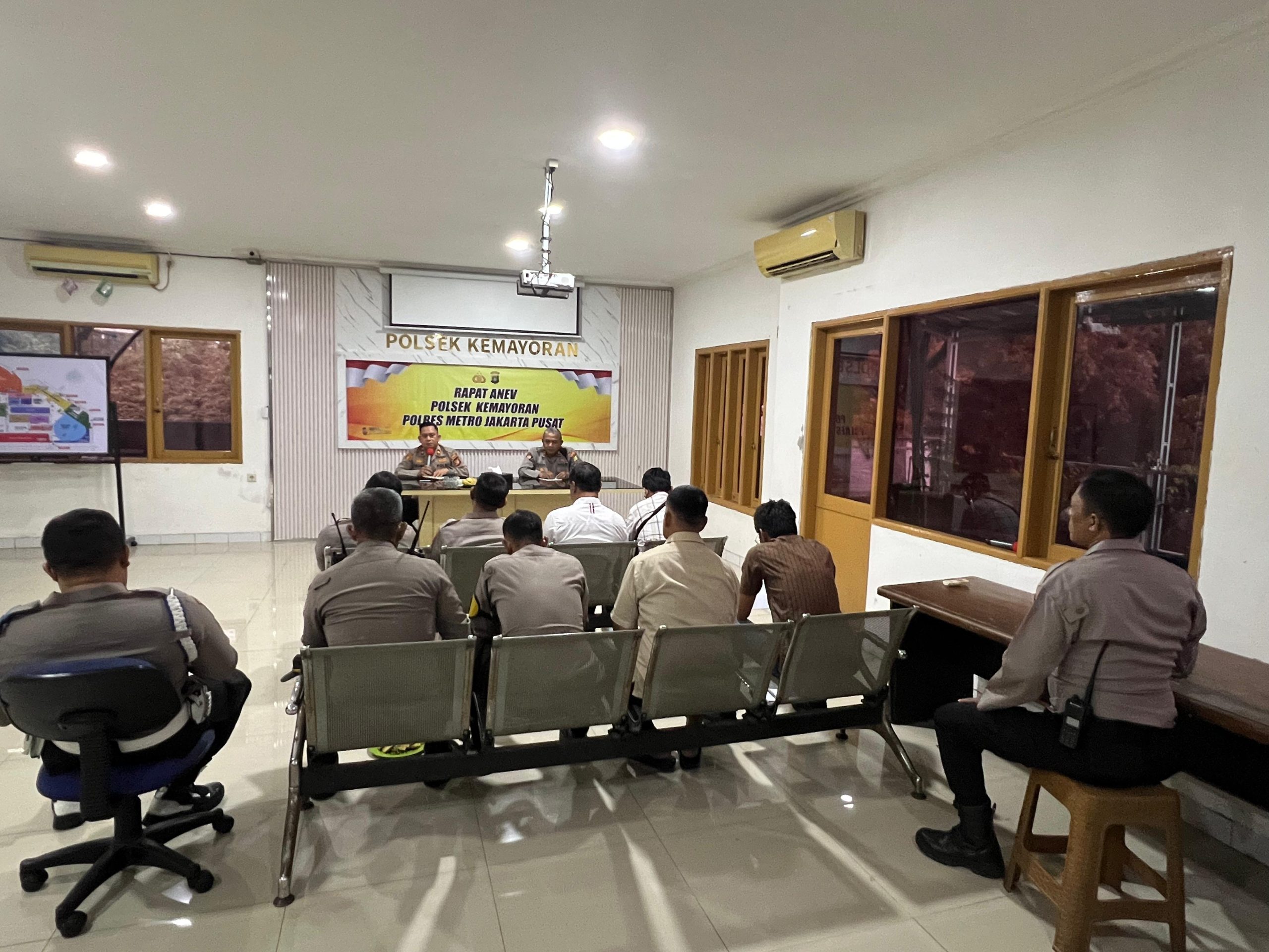 Melalui kegiatan Anev mingguan ini menjadi salah satu upaya Polsek Kemayoran untuk meningkatkan kamtibmas dan pelayanan kepada masyarakat di wilayah hukumnya.Humas Polres Metro Jakarta Pusat.