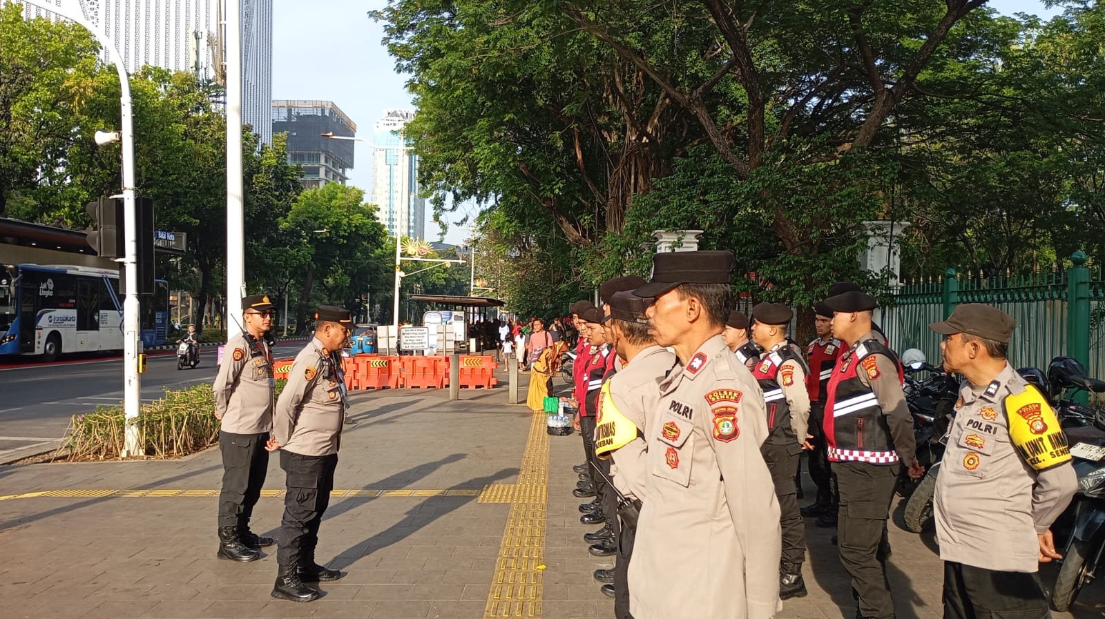 “Kita harus memastikan bahwa wilayah Ploting kita di silang Monas Gambir ini tetap aman dan kondusif menjelang pelantikan dan sesudah pelantikan Presiden dan Wakil Presiden terpilih ,Seluruh personel gabungan harus berperan aktif dalam menjaga keamanan dan melakukan langkah preventif ,”ujar Kapolsek