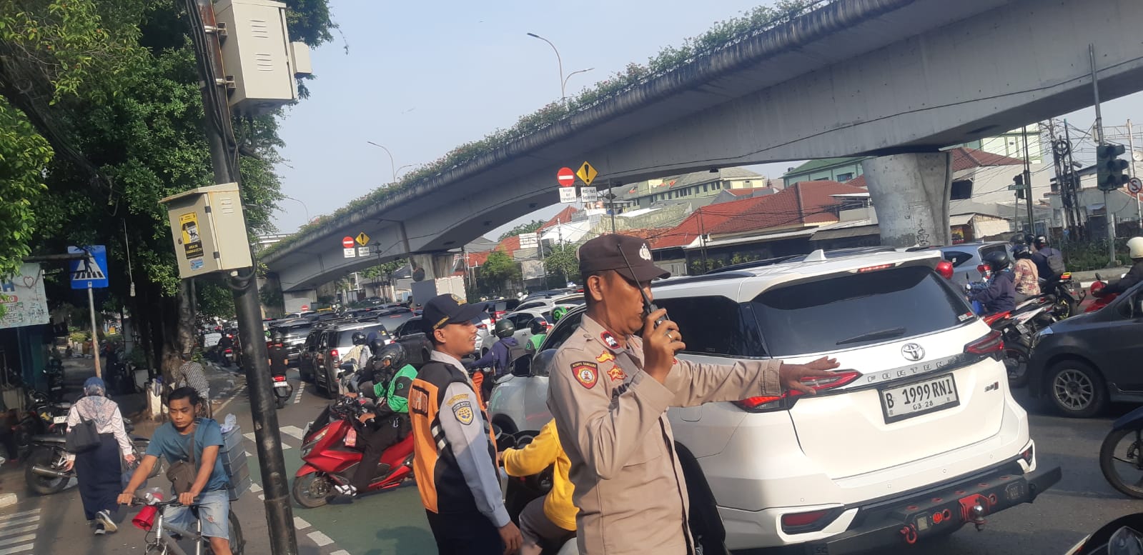 Jakarta Pusat – Kapolsubsektor Tanah Tinggi Aiptu Antonius AW bersama petugas Dishub Kecamatan Johar Baru, Melaksanakan Pengaturan Lalu Lintas Pagi Hari di Jalan Letjend Suprapto Wilayah Johar Baru Jakarta Pusat. Senin (30/09/2024).