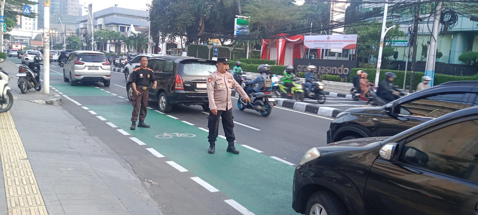 Jakarta Pusat – Aiptu Ali Imran Kapolsubsektor Cut Mutia Polsek Metro Menteng Melaksanakan Pengaturan Sore Hari Lalu lintas di Jalan Menteng Raya Menteng Jakarta Pusat. Selasa (1/10/2024).