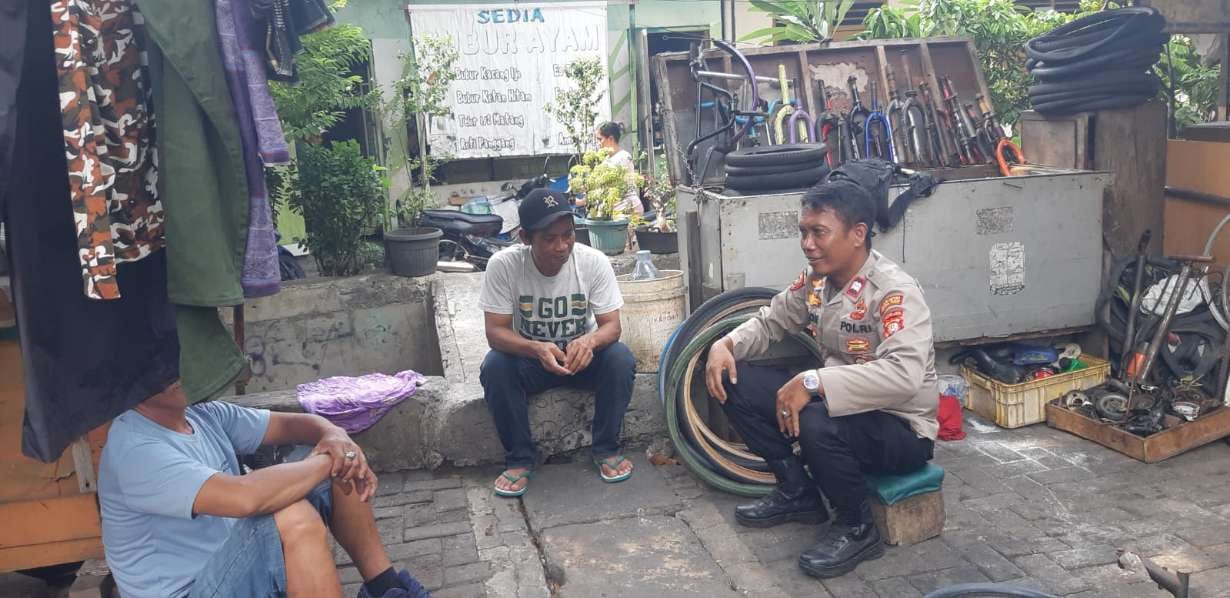 Selanjutnya Aiptu Antonius AW bertemu dengan beberapa orang warga setempat untuk memberikan imbauan kamtibmas sekaligus berbincang bincang bertukar informasi terkait masalah keamanan dan ketertiban di lingkungan.