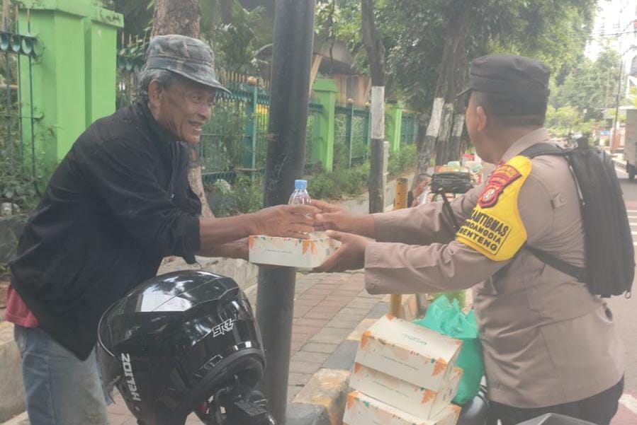 Jakarta Pusat- Bhabinkamtibmas Gondangdia, Aiptu Kamidi, melaksanakan kegiatan sosial dalam rangka Jumat Berkah dengan berbagi nasi kotak dan air mineral kepada para pengemudi Grab dan ojek online di sekitar wilayah Gondangdia, Jakarta Pusat. Sabtu, (28/12/2024).