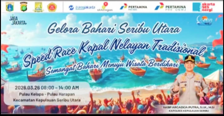 *KEPULAUAN SERIBU UTARA* — Lomba adu cepat kapal nelayan tradisional akan menjadi salah satu daya tarik utama dalam gelaran “Gelora Bahari Seribu Utara 2026” yang akan berlangsung pada Kamis, 26 Maret 2026.