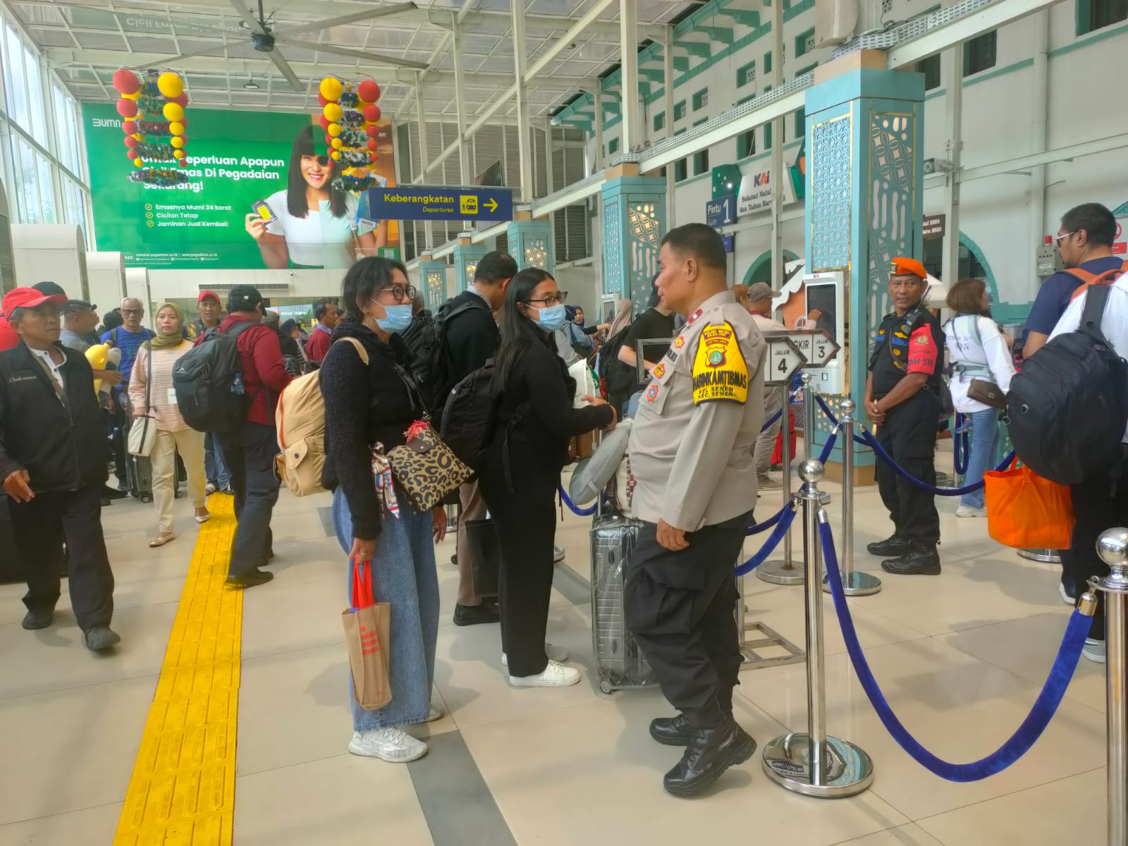 Jakarta Pusat – Memasuki jelang libur Natal dan tahun baru 2025, Bhabinkamtibmas Senen Aipda Marzuki melaksanakan kegiatan memantau dan pengamanan Stasiun Pasar Senen serta memberikan himbauan kamtibmas kepada penumpang, Kamis(19/12/2024) Siang.
