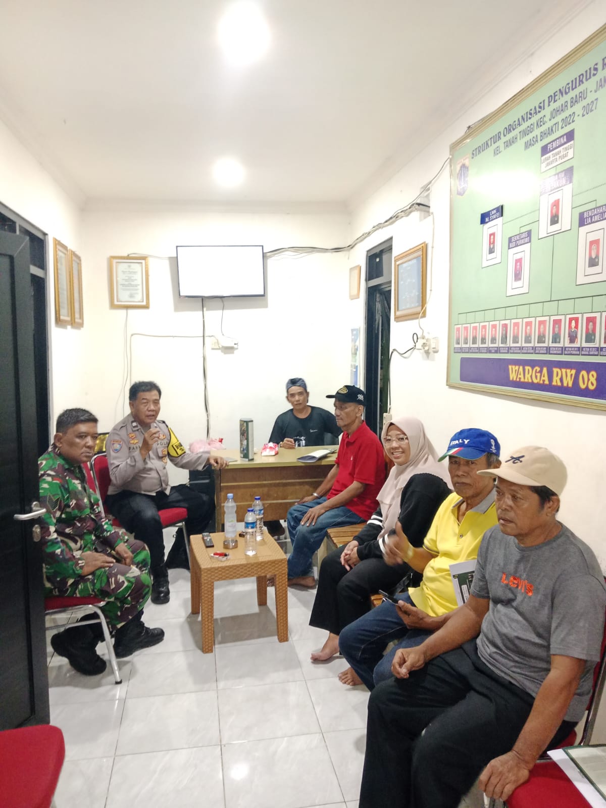 Jakarta Pusat – Polsek Johar Baru kembali Menggelar Kegiatan “Ngopi Kamtibmas untuk Perkuat Hubungan Antara Bhabinkamtibmas, Babinsa, dan Ketua RW/RT” dilaksanakan pada hari Jumat, malam tanggal 21 Februari 2025, pukul 19.30 WIB, bertempat di Pos Sekretariat RW 08 Tanah Tinggi, Jalan Kramat Pulo Gundul RW 08 Kelurahan Tanah Tinggi, Kecamatan Johar Baru Jakarta Pusat. Sabtu (22/02/2025).