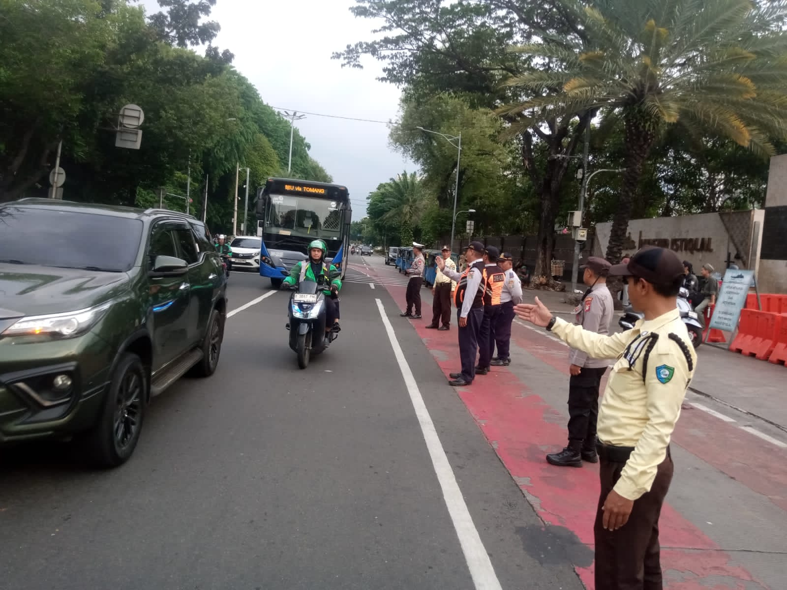 Sebanyak 9 personel dikerahkan dalam kegiatan ini, yang terdiri dari Satlantas Polres Metro Jakarta Pusat, unit sabhara Polsek Sawah Besar, Dinas Perhubungan, Satpol PP dan Pamdal Masjid Istiqlal, yang di tempat kan di sekitar masjid, antara lain Jalan Wijaya Kusuma, Tugu Adipura, Veteran Raya, dan Jalan Perwira.