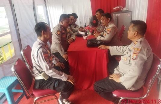 Jakarta Pusat – Kanit Propam Polsek CempakaPutih Iptu Agus Supriatna melakukan pengecekan terhadap kesiapan anggota di Pos Pengamanan (Pos Pam) Natal 2024 dan Tahun Baru 2025 TL Coca Cola Cempaka Putih Jakarta Pusat. Senin (23/12/2024)