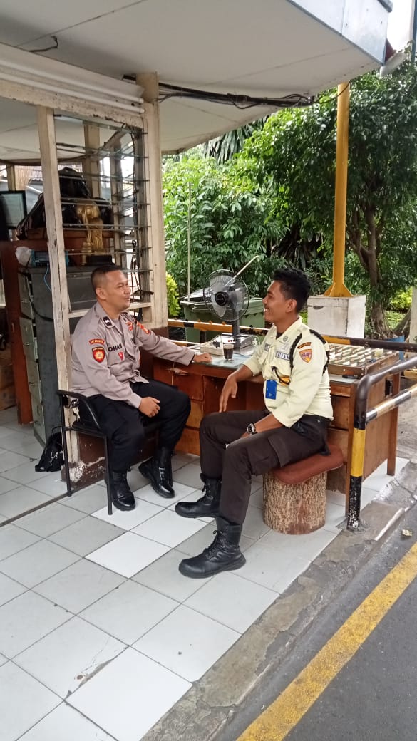 Aipda Johan sambangi security berikan imbauan kamtibmas agar selalu menjaga keamanan dan ketertiban, lakukan patroli rutin dan sesuai SOP dan pastikan CCTV dalam keadaan aktif untuk mempermudah monitoring.