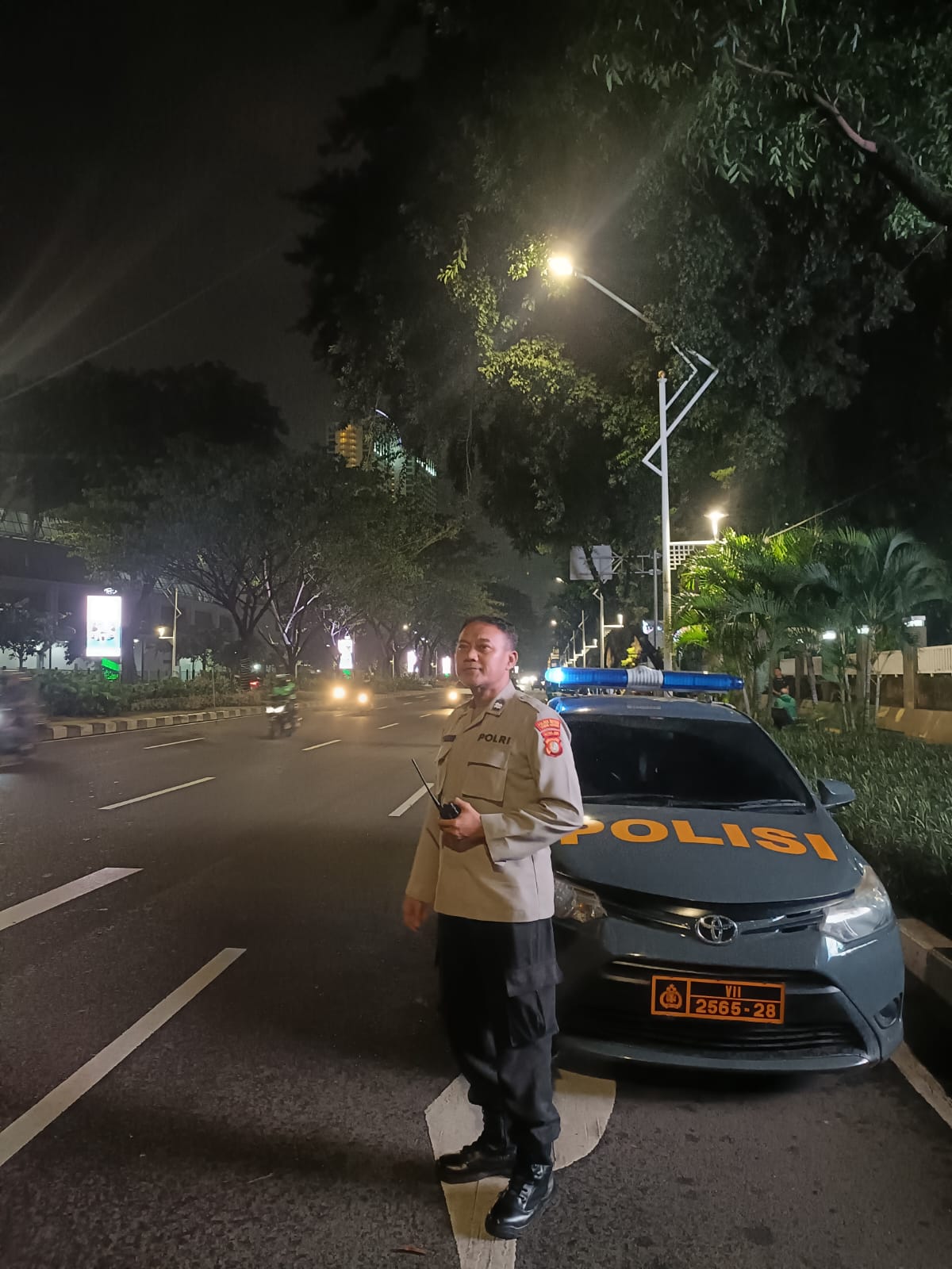 Petugas Patroli 1053 Unit Samapta melaksanakan patroli pukul 00.30 Wib dini hari di sepanjang Sudirman, Gerbang Pemuda, Jalan Asia Afrika dan Jalan Alteri Senayan guna terciptanya situasi harkamtibmas yang aman dan kondusif sekaligus antisipasi curas, curat, curanmor dan trek-trekan.