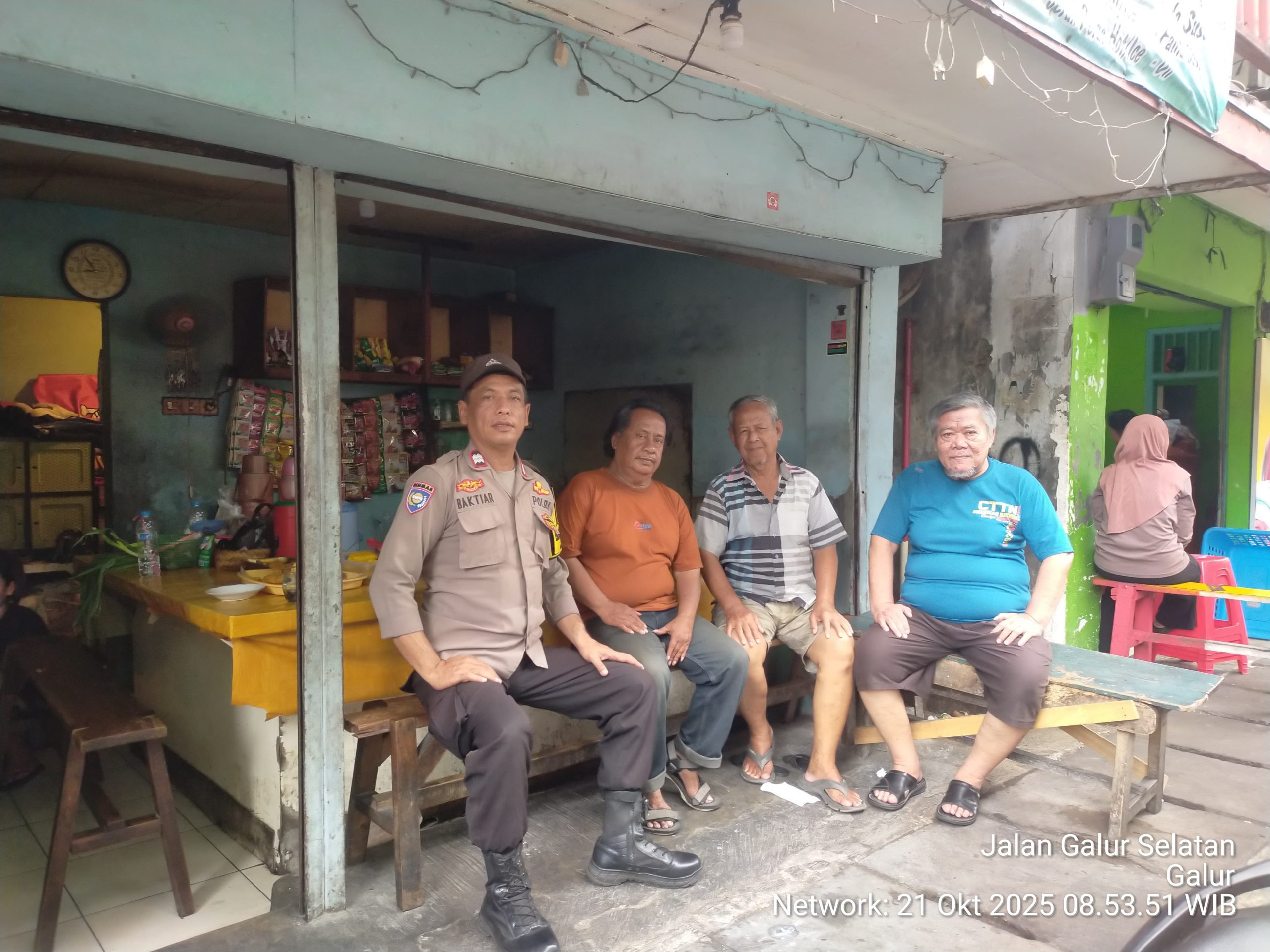 Tempojakarta.id,Jakarta Pusat – Dalam rangka menjaga situasi aman dan kondusif, Bhabinkamtibmas Kelurahan Galur, Aiptu Baktiar, melaksanakan kegiatan patroli dan sambang wilayah RW 01, pada Selasa (21/10/2025) pukul 09.30 WIB. Kegiatan berlangsung di Warkop Jl. Galur Selatan RT 002/01, Kelurahan Galur, Johar Baru, Jakarta Pusat.