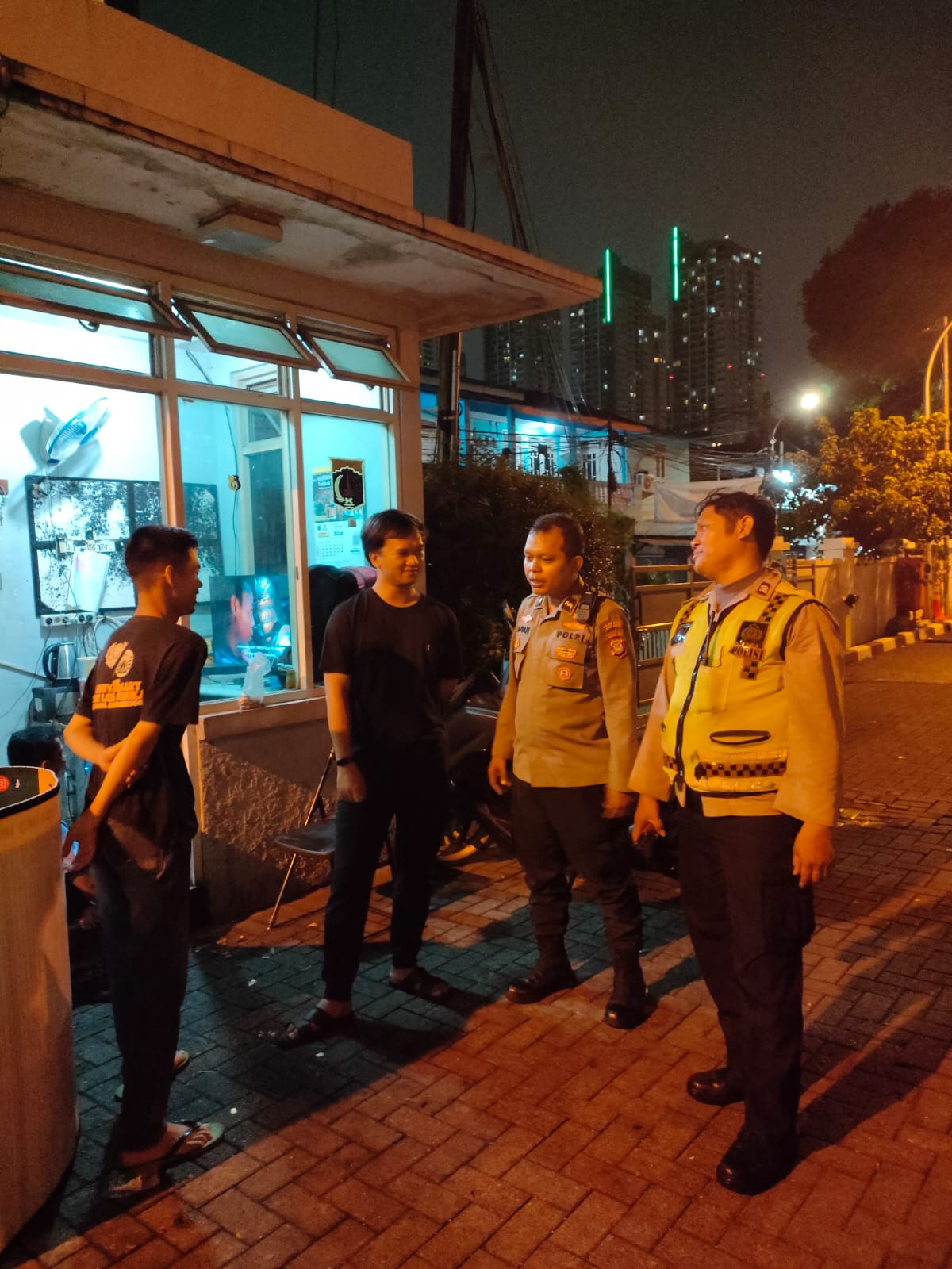 Patroli Dini Hari 1051 Polsektro Tanah Abang Dan Sambangi Petugas Keamanan Bawaslu Kota Adm Jakarta Pusat