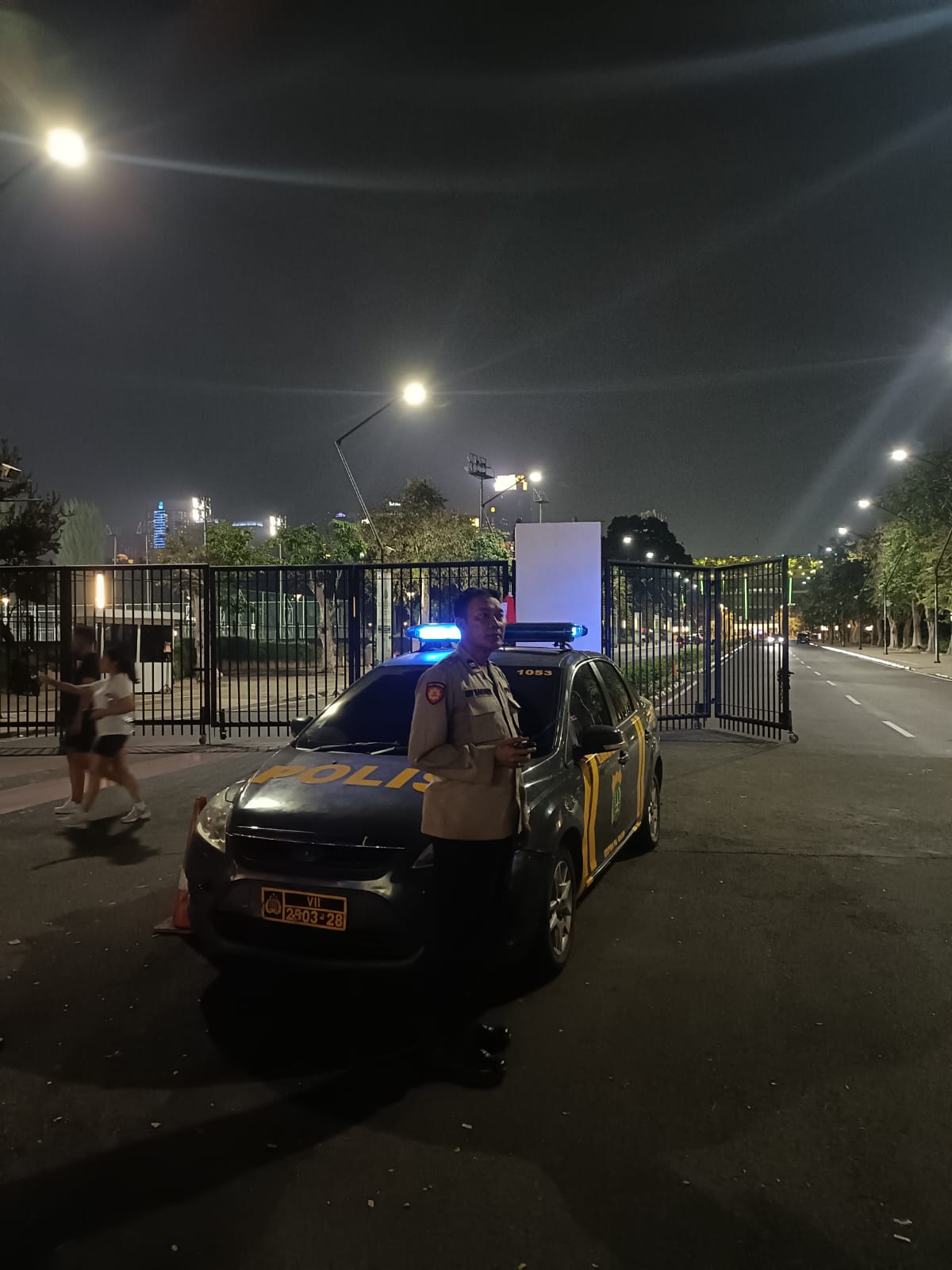Aiptu Edy selaku Petugas Patroli 1053 melaksanakan patroli dan strong point di Jalan Gerbang Pemuda Senayan dalam rangka memberikan rasa aman dan nyaman kepada masyarakat.