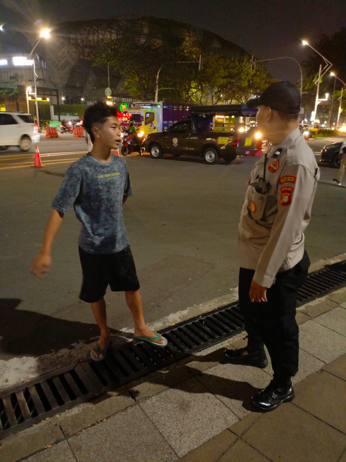 Jakarta Pusat – Patroli Unit Samapta Polsek Metro Tanah Abang melaksanakan patroli malam hari, sambangi dan berikan imbauan kepada Warga yang menanyakan jalan di Pintu 10 GBK Senayan Jalan Gerbang Pemuda Kelurahan Gelora Kecamatan Tanah Abang Jakarta Pusat. Jumat (30/08/2024).