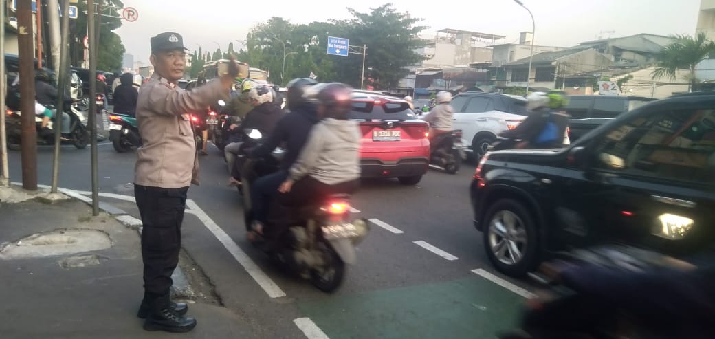 Jakarta Pusat – Kapolsubsektor Galur Aiptu Zulfikar Hasibuan, melakukan pengaturan arus lalu lintas pagi hari di Jalan Abdul Gani Letjend Suprapto wilayah kelurahan Galur, kecamatan Johar Baru Jakarta Pusat. Senin (26/8/2024).