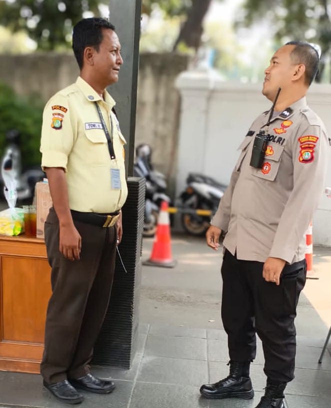 Aipda Johan selaku Petugas Patroli 1053 melaksanakan patroli dan sambangi security Gedung BPK RI berikan imbauan kamtibmas agar selalu menjaga keamanan dan ketertiban, lakukan pemantauan dan patroli serta apabila ada yang mencurigakan lakukan pemeriksaan secara humanis serta monitoring CCTV.