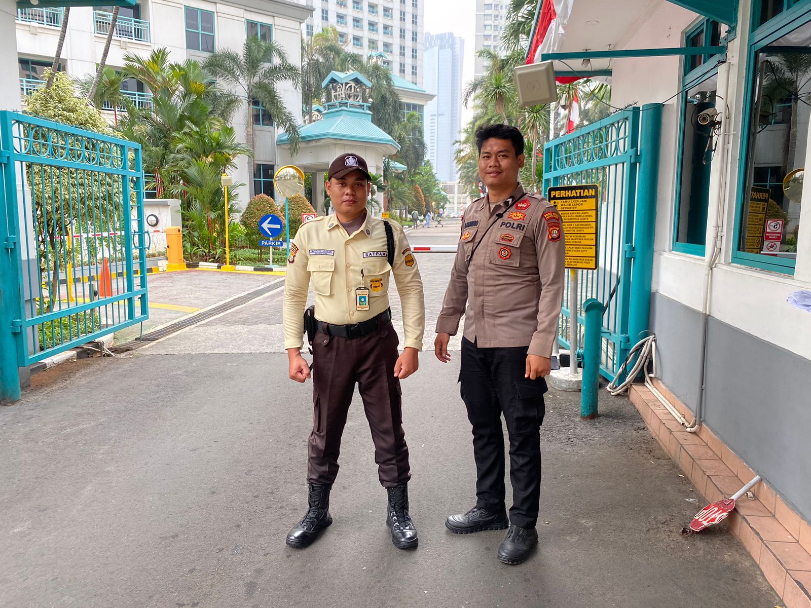 Jakarta Pusat – Patroli Unit Samapta Polsek Metro Tanah Abang melaksanakan patroli sore hari dan sambangi petugas keamanan Apartemen Paviliun Jalan Jenderal Sudirman Kelurahan Karet Tengsin Kecamatan Tanah Abang Jakarta Pusat. Senin (26/08/2024).