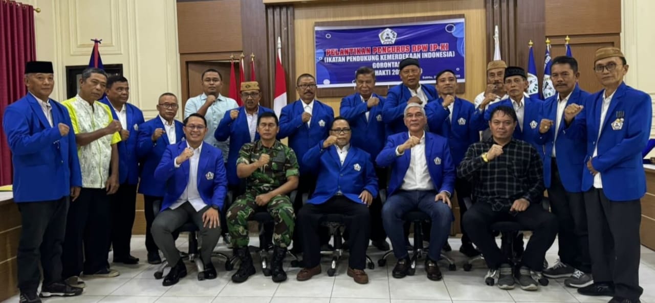 Dewan Pengurus Wilayah (DPW) Ikatan Pendukung Kemerdekaan Indonesia (IP-KI) Provinsi Gorontalo resmi dilantik hari ini untuk periode 2025-2030. Bertempat di Kesbangpol Provinsi Gorontalo, acara ini dihadiri oleh Ketua Umum DPP IP-KI Bapak Baskara Harimukti Sukarya, Sekretaris Jenderal DPP IP-KI Bapak Troy Aldi Pratama, serta dihadiri oleh PJ Gubernur Provinsi Gorontalo yang di wakili Sekda Kabupaten, Kepala Kesbangpol, PJ Wakil Walikota, Danrem 133 Wartabone dan berbagai tokoh masyarakat dan tamu undangan.